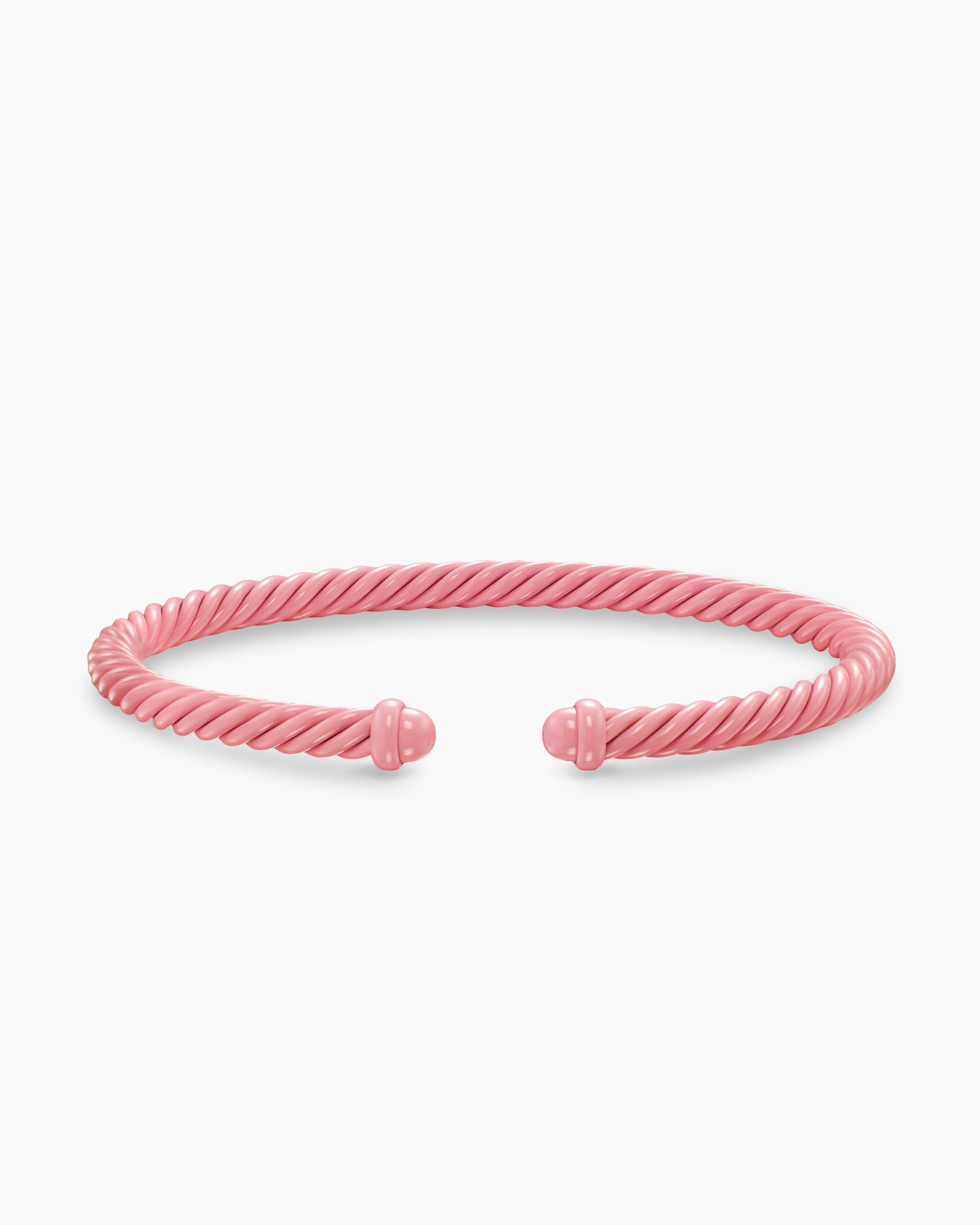 David Yurman’s artistic signature, Cable began as a bracelet that he hand-twisted from 50 feet of wire. For the past 30 years, he has evolved the twisted helix into a myriad of designs.Pink aluminumBracelet, 4mm