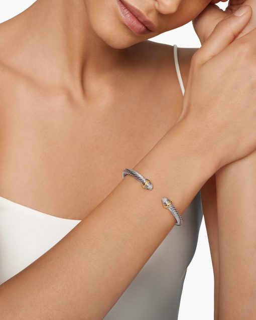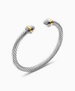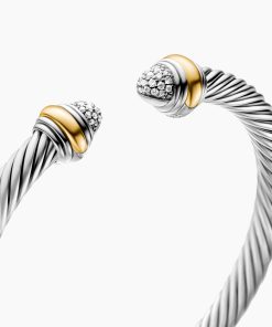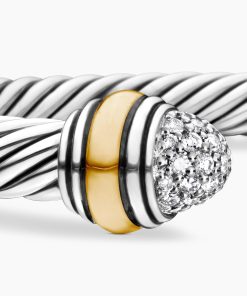 David Yurman’s artistic signature, Cable began as a bracelet that he hand-twisted from 50 feet of wire. For the past 30 years, he has evolved the twisted helix into a myriad of designs. Sterling silver and 14-karat yellow goldPavé diamonds, 0.16 total carat weightBracelet, 5mm