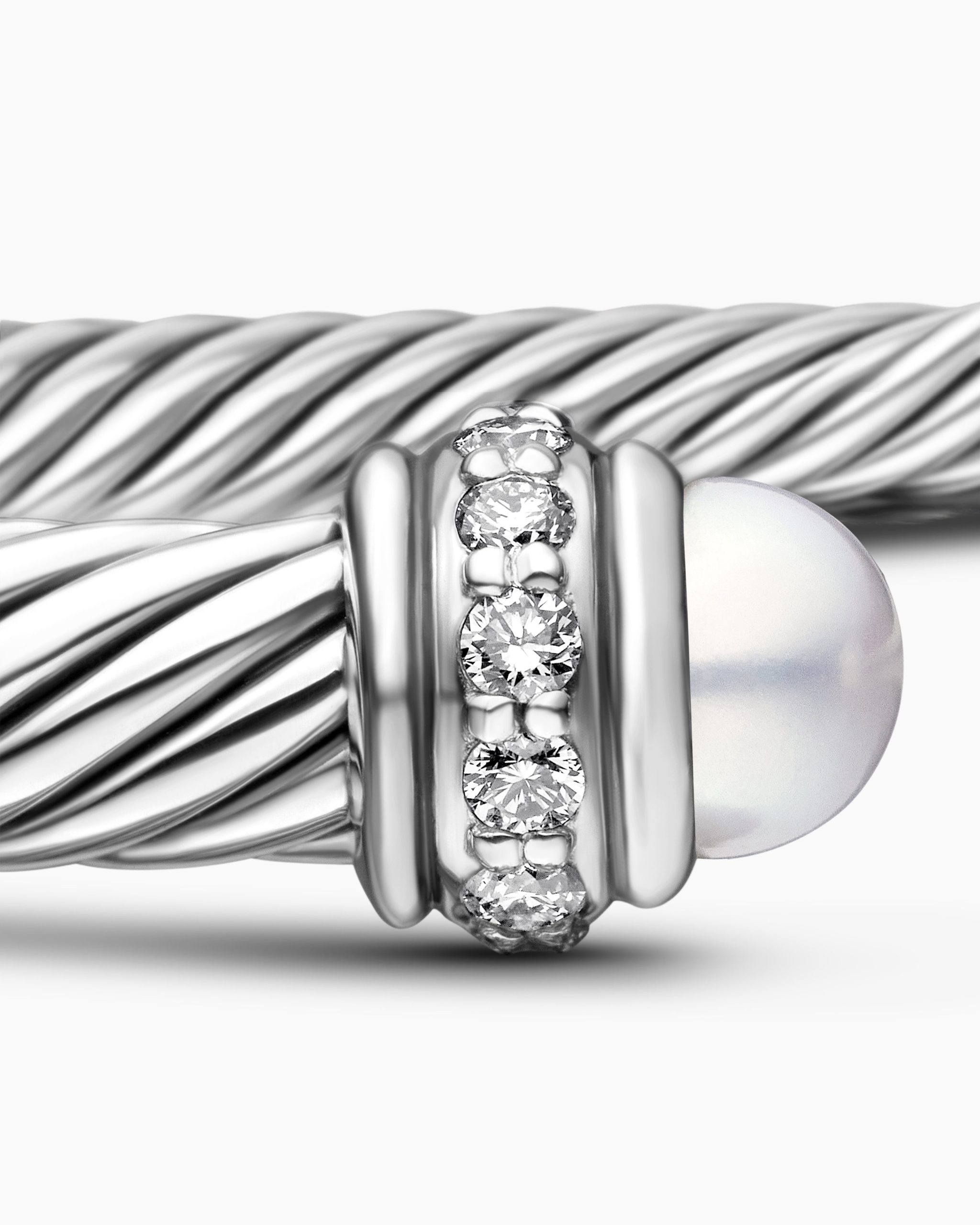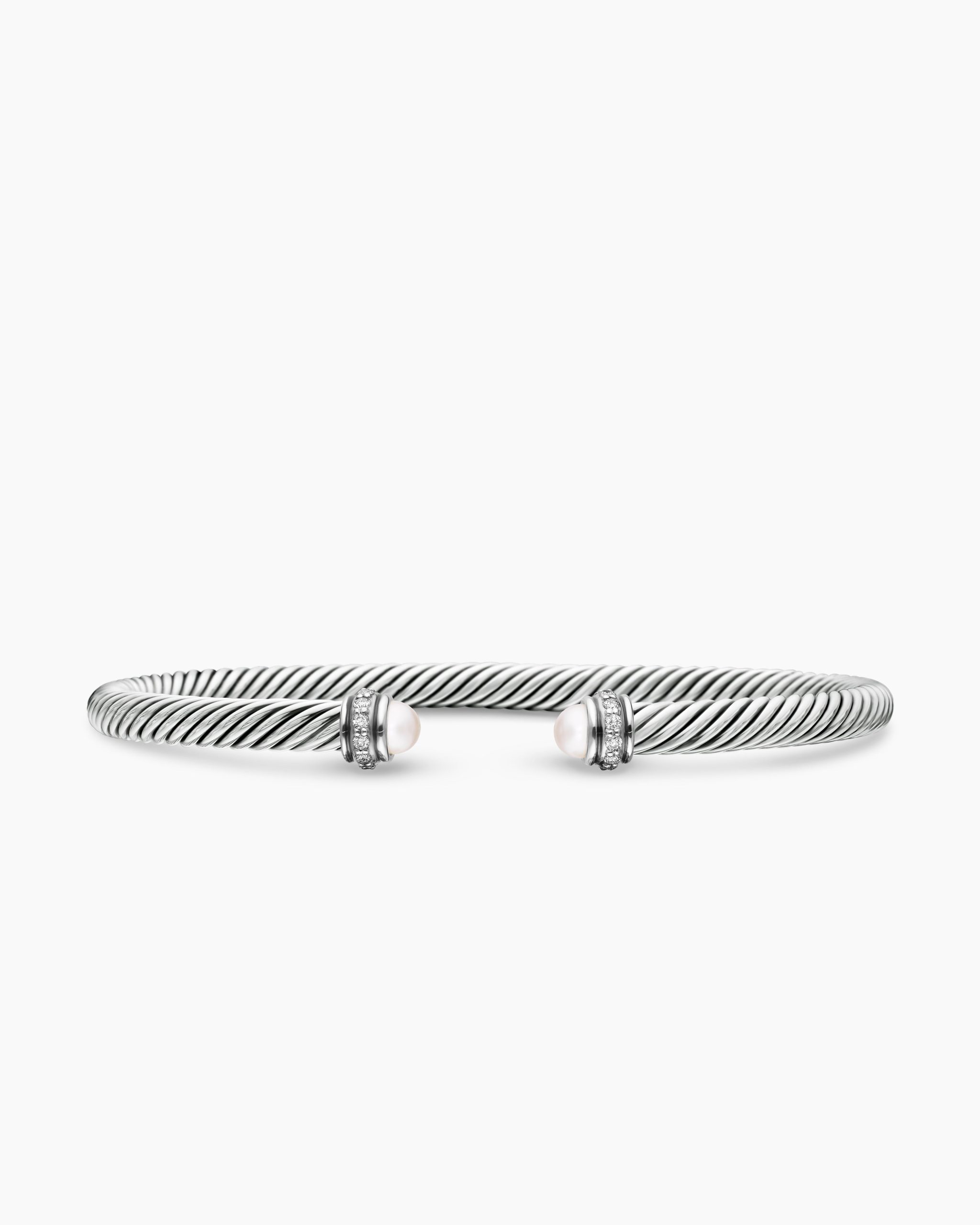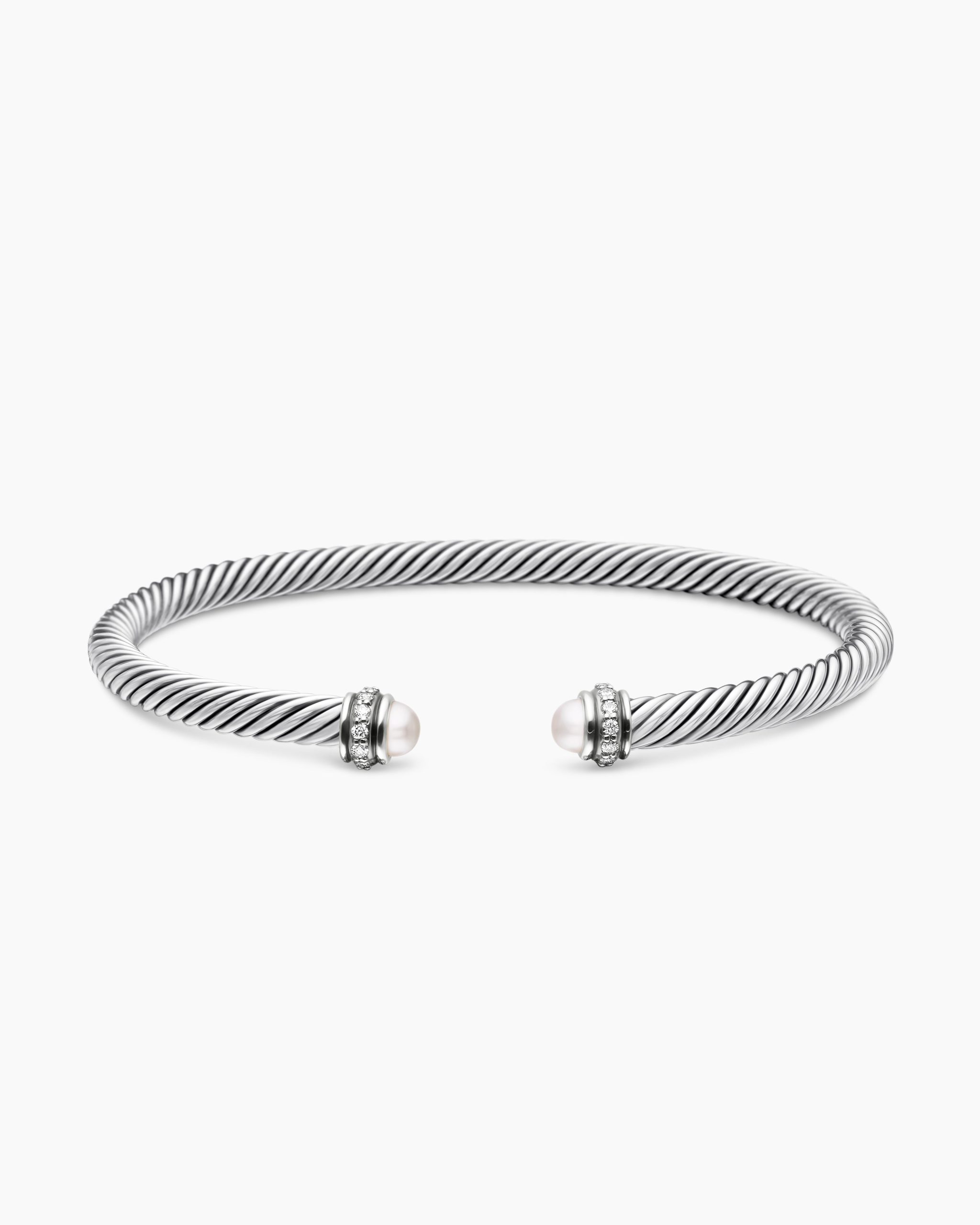 David Yurman’s artistic signature, Cable began as a bracelet that he hand-twisted from 50 feet of wire. For the past 30 years, he has evolved the twisted helix into a myriad of designs. Sterling silverCultured freshwater pearls, 4-4.25mmPavé diamonds, 0.14 total carat weightBracelet, 4mm
