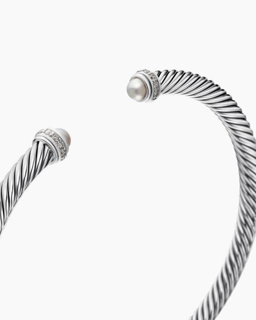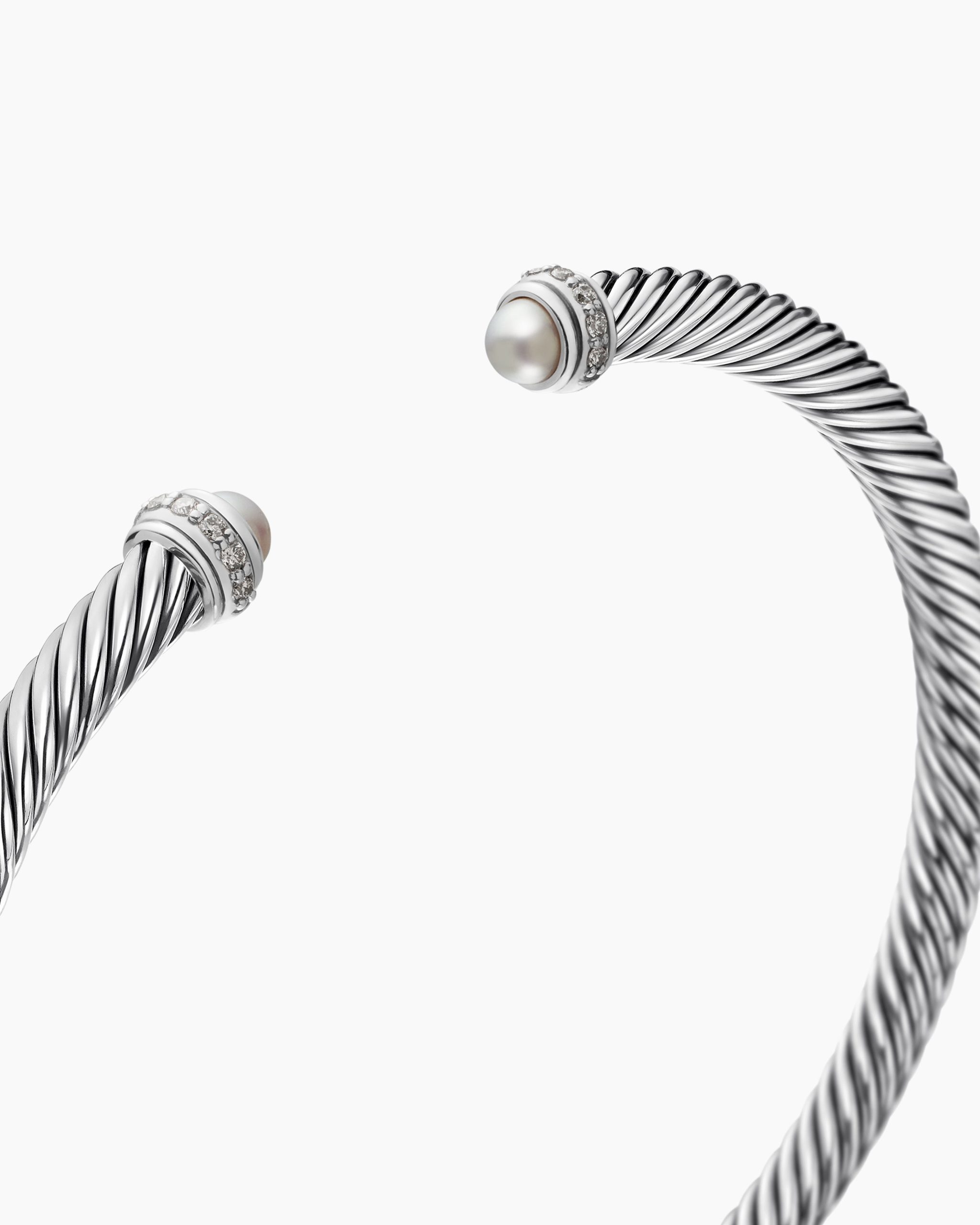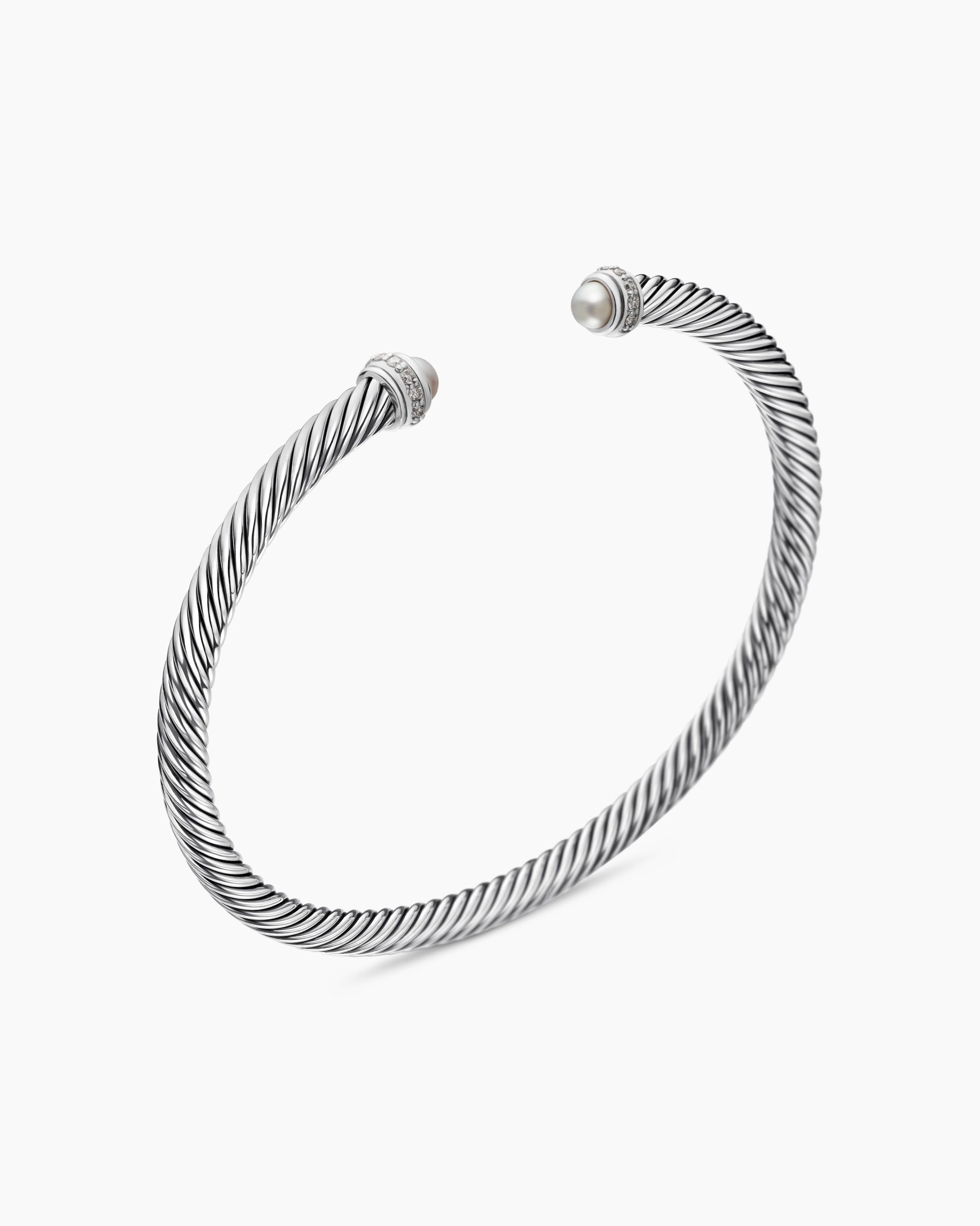 David Yurman’s artistic signature, Cable began as a bracelet that he hand-twisted from 50 feet of wire. For the past 30 years, he has evolved the twisted helix into a myriad of designs. Sterling silverCultured freshwater pearls, 4-4.25mmPavé diamonds, 0.14 total carat weightBracelet, 4mm