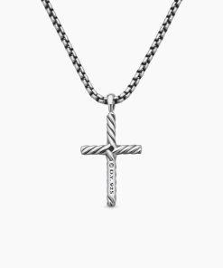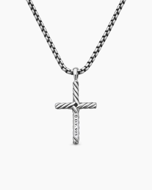 David Yurman’s iconic Cable motif beautifully adorns a universal symbol or shape, creating a modern talisman meant to be collected, combined and treasured. Sterling silverDiamond, 0.03 total carat weightCross 24.3 x 13.2mmChain, 1.25mmLobster clasp