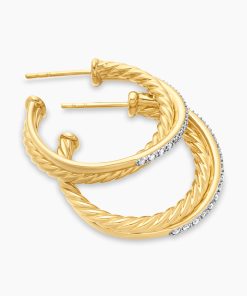 David Yurman Women’s Crossover Hoop Earrings | Diamond