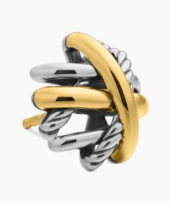 The Crossover Collection® explores the rhythmic weaving of line to create form and movement. Using a dynamic range of smooth and cabled cords, the individual strands are meticulously entwined. Sterling silver with 18-karat yellow goldEarrings, 11mm