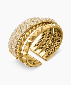 Perfect triangles placed within the rhythmic weaving of smooth and Cabled strands intertwine into multifaceted designs as a symbol of unity.18-karat yellow goldPavé-set diamonds, 6.51 total carat weightBracelet, 33mm