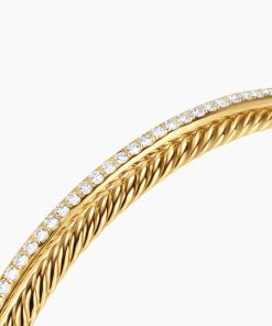 The DY Crossover® Collection explores the rhythmic weaving of line to create form and movement. Using a dynamic range of smooth and cabled cords, the individual strands are meticulously entwined.18-karat yellow goldPavé-set diamonds, total carat weight range from 0.61 to 0.74 (dependent on size)Bracelet, 6mm
