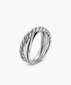 The DY Crossover® Collection explores the rhythmic weaving of line to create form and movement. Using a dynamic range of smooth and cabled cords, the individual strands are meticulously entwined.Sterling silverRing, 7.4mmThis item can be resized and/or engraved. Please contact customer care for more information.