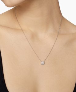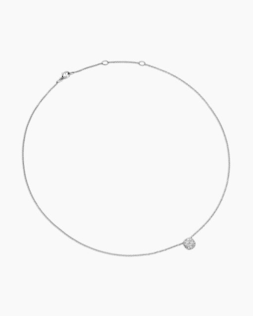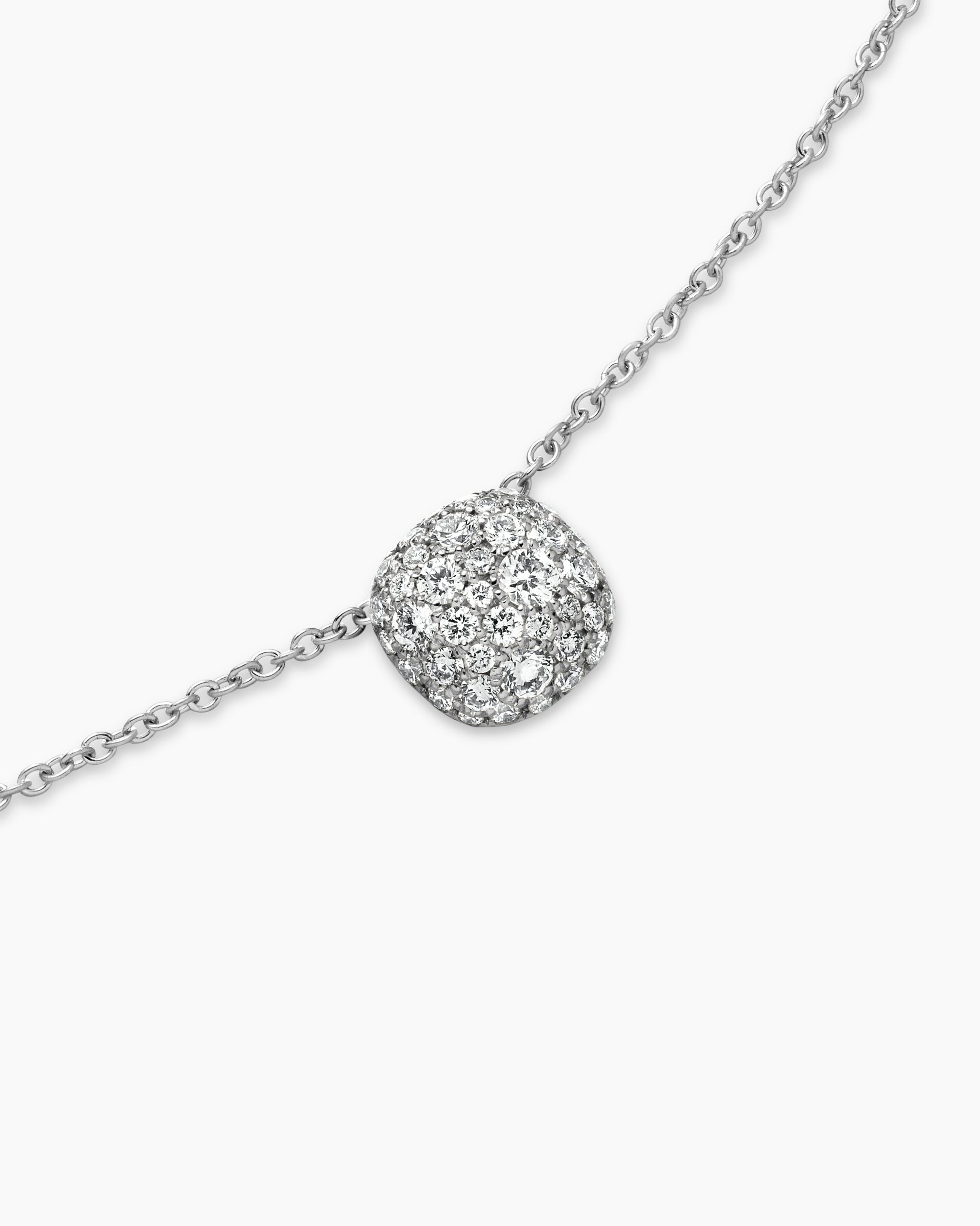 This collection combines delicate designs with dramatic pavé-set gemstones capturing the excitement and energy of New York City at night. 18-karat white goldPavé diamonds, 0.40 total carat weightAdjustable length, 16-18inPendant, 8mmChain, 1.1mmLobster clasp