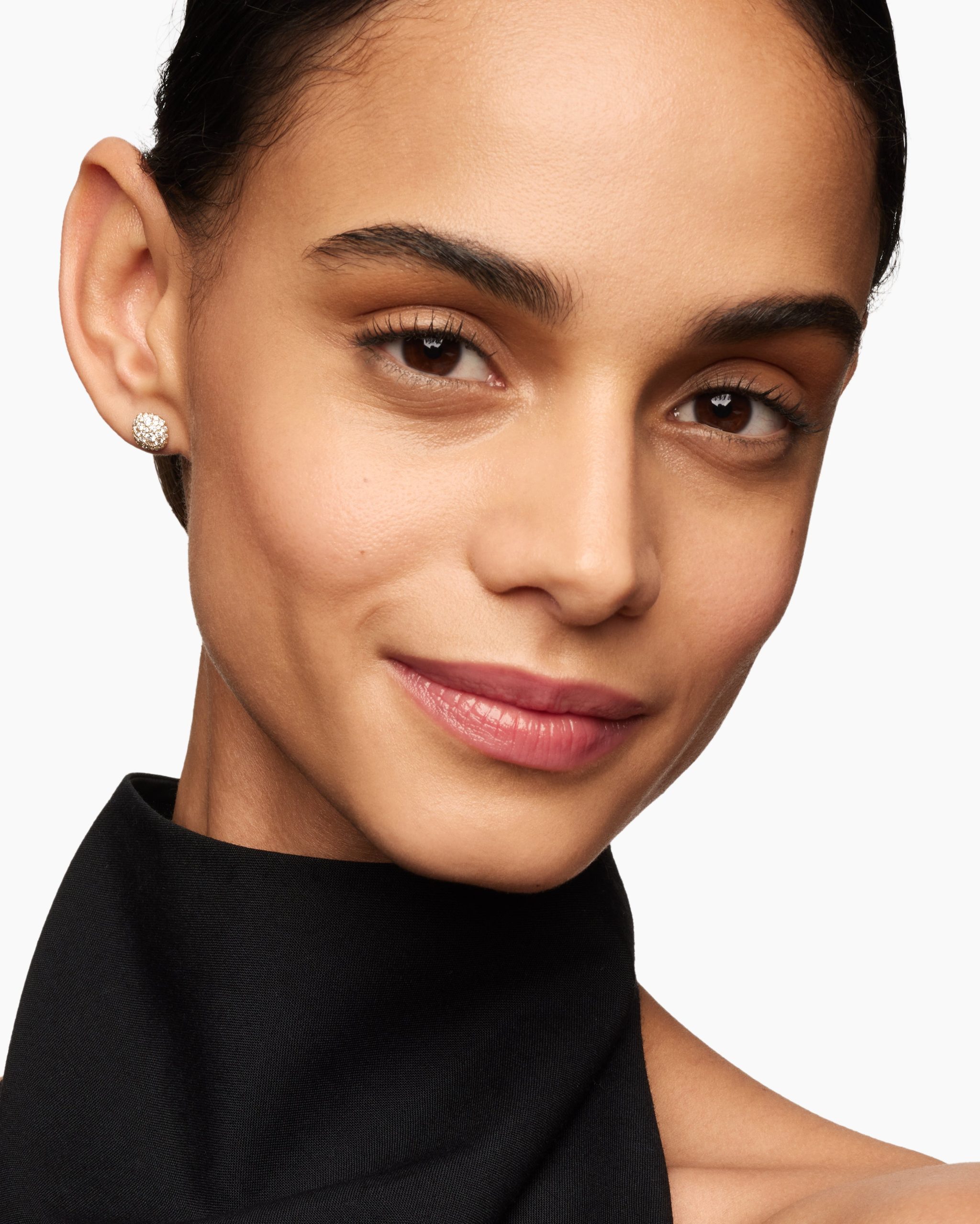 This collection combines delicate designs with dramatic pavé-set gemstones capturing the excitement and energy of New York City at night. 18-karat yellow goldPavé diamonds, 0.80 total carat weightEarrings, 8mm
