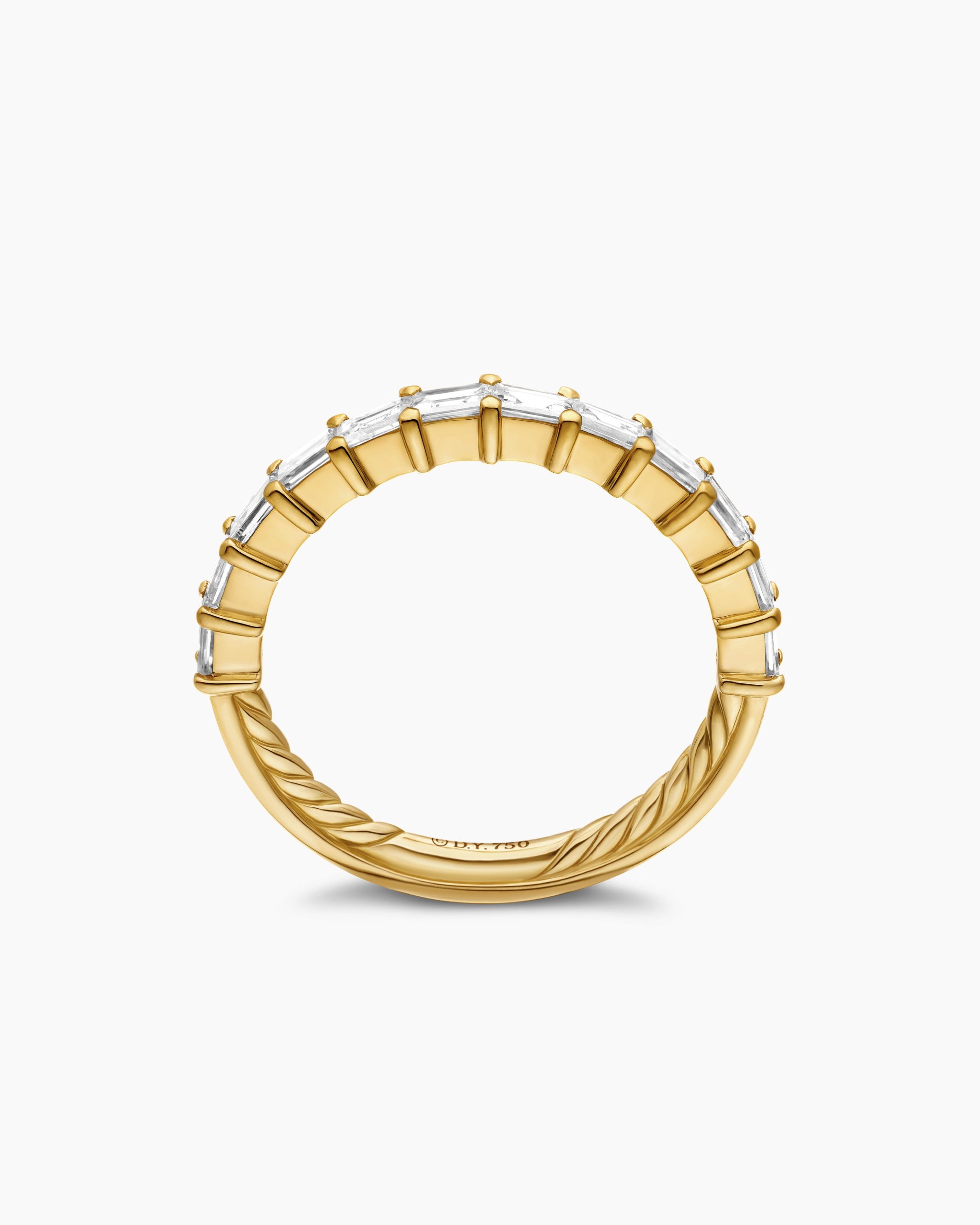 This symbol of enduring love is designed to celebrate your individuality and personal sense of style. 18-karat yellow goldBaguette diamonds, 0.44 total carat weightRing, 2mmThis item can be resized. Please contact customer care for more information.This item can be engraved. Please contact customer care for more information.