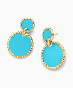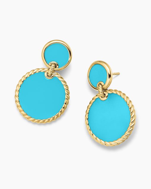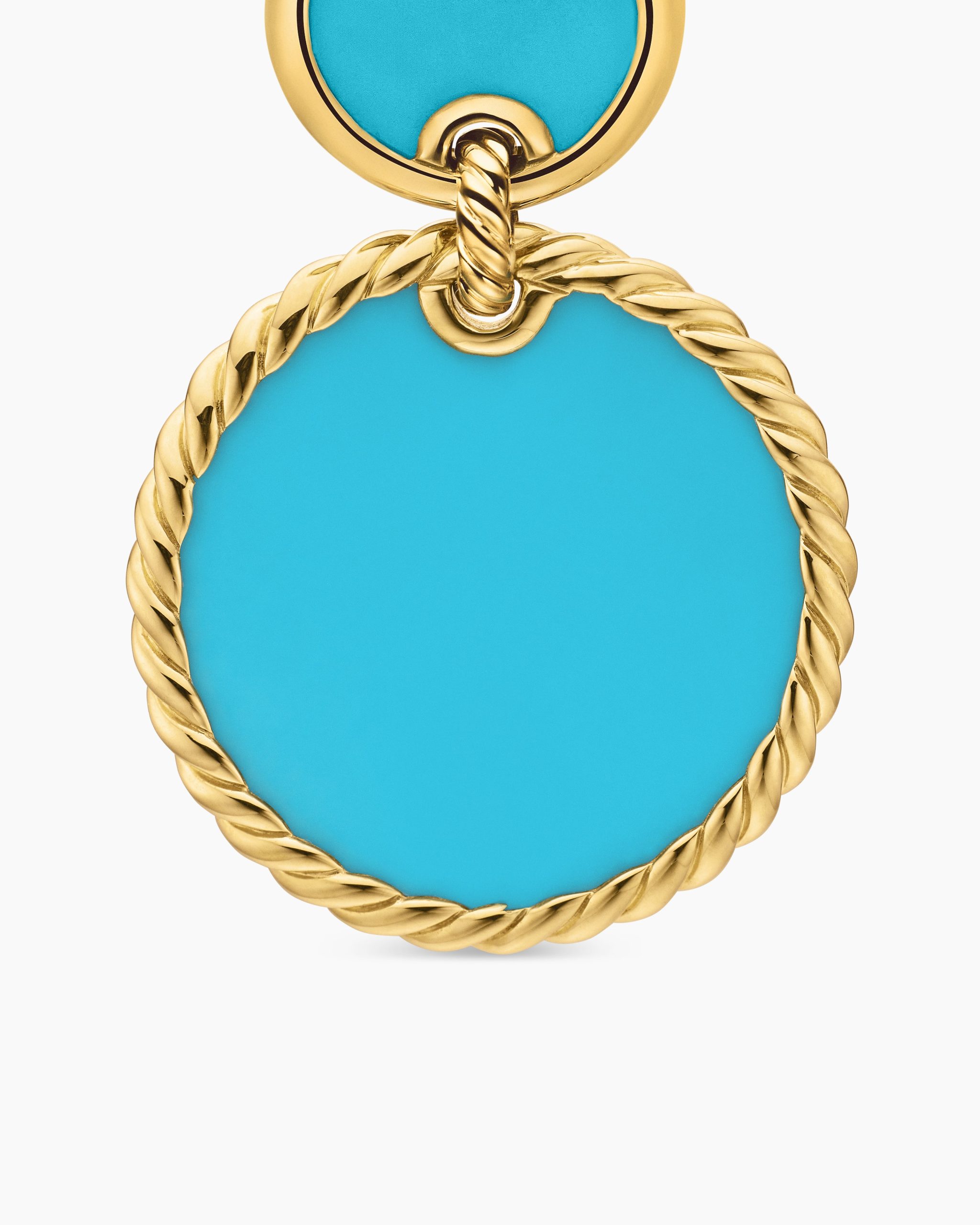 In this collection, David Yurman explores the circle—a timeless symbol of unity, a shape without beginning or end. 18-karat yellow goldTurquoiseEarring drop length, 33mm