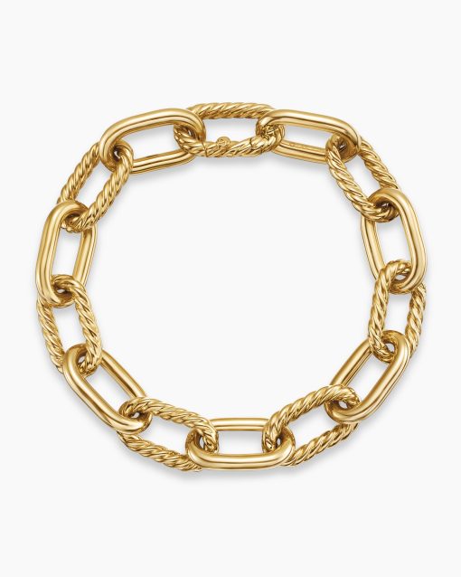 Named for the iconic Manhattan avenue, DY Madison® captures the bold spirit of New York City—unexpected moments and the promise of success. A striking juxtaposition of smooth and Cabled, pillow-shaped links fuses the brand’s signature design elements to create a unique rhythm. At once modern and timeless, these must-have chains are instant heirlooms.18-karat yellow goldBracelet, 11mmPush claspThis item can be engraved. Please contact customer care for more information.