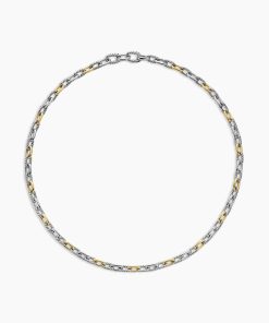 Named for the iconic Manhattan avenue, DY Madison® captures the bold spirit of New York City—unexpected moments and the promise of success. A striking juxtaposition of smooth and Cabled, pillow-shaped links fuses the brand’s signature design elements to create a unique rhythm. At once modern and timeless, these must-have chains are instant heirlooms.Sterling silver with 18-karat bonded yellow goldNecklace, 5.5mmPush clasp
