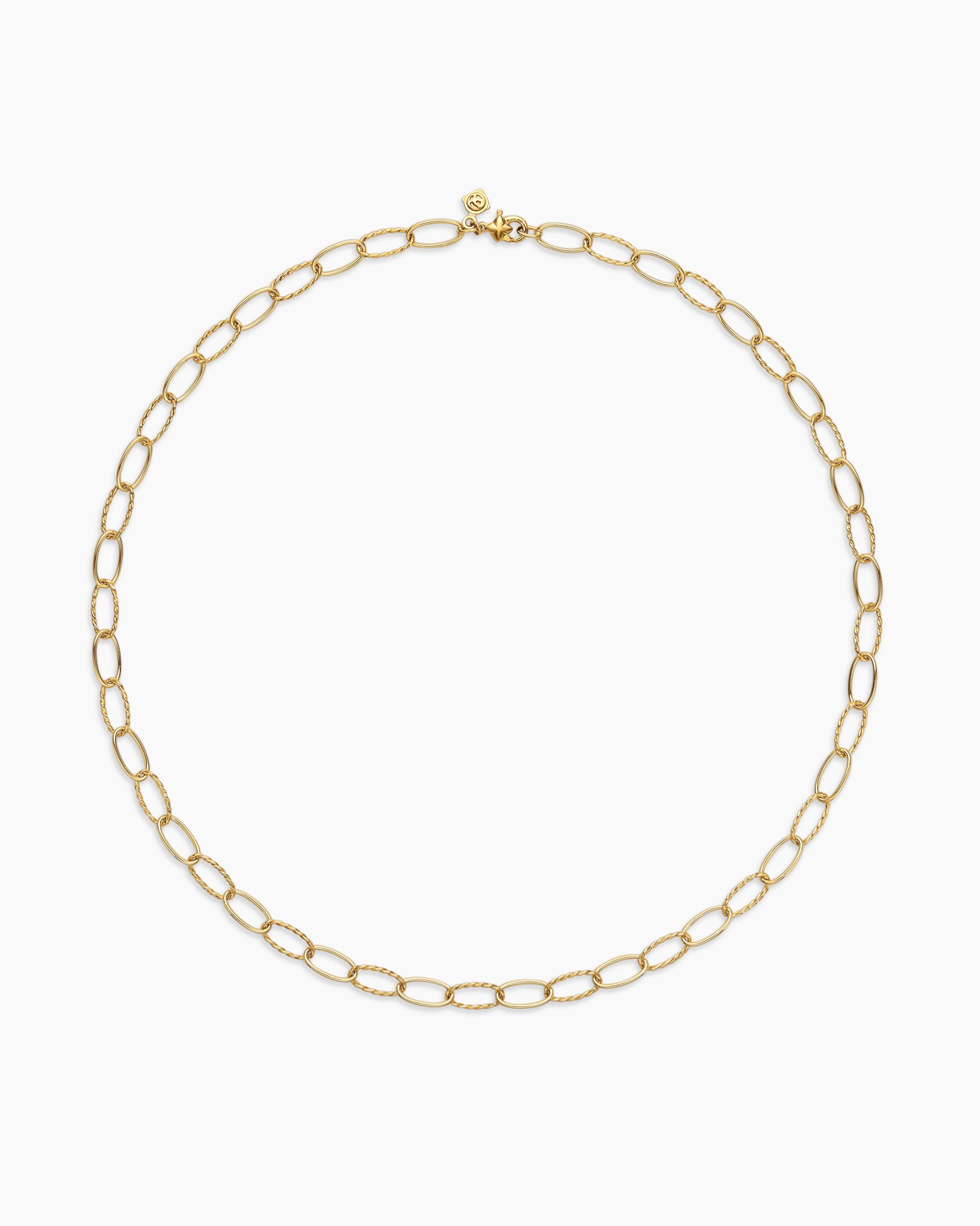 Inspired by classical and original motifs, David Yurman chain necklaces and bracelets showcase masterful craftsmanship, with sculptural links carved and assembled for seamless movement. Ideal for layering, these timeless chains are the foundation of a jewelry collection, whether worn alone or paired with a pendant.18-karat yellow goldChain, 6mmLobster clasp