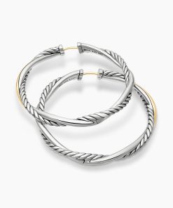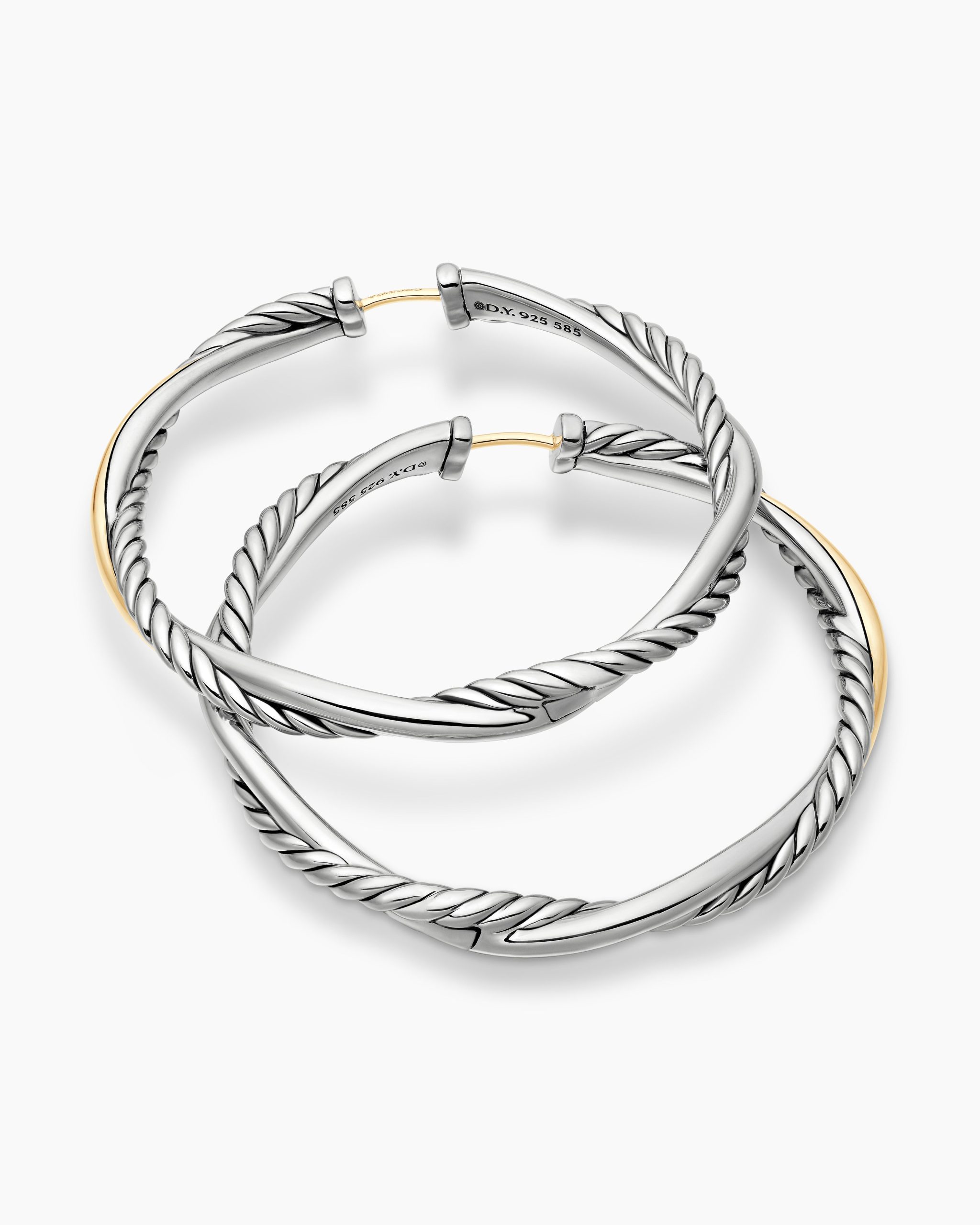 The Infinity Collection is a fresh take on the ancient symbol with a pair of elliptical smooth and Cabled links interlaced in perfect harmony. Sterling silver with 14-karat yellow goldEarrings, 42 x 4mm