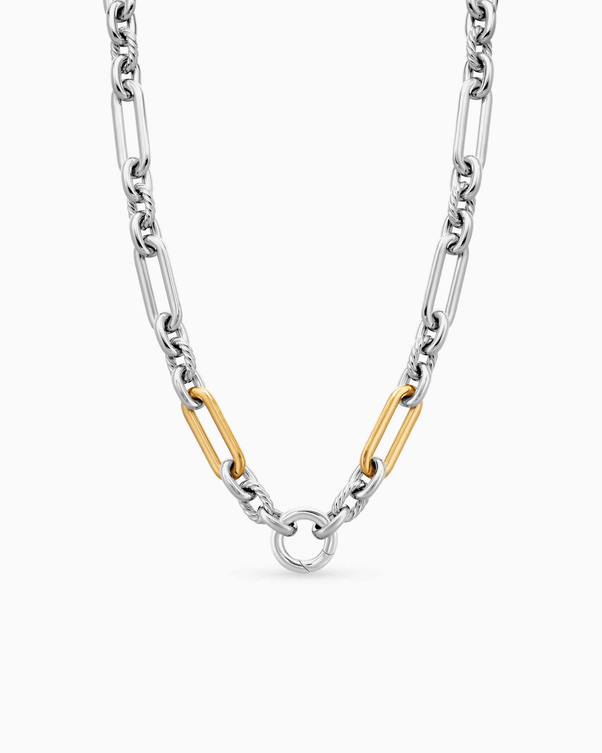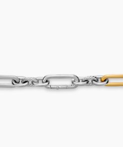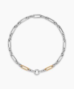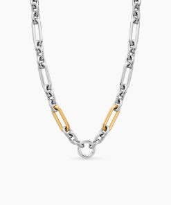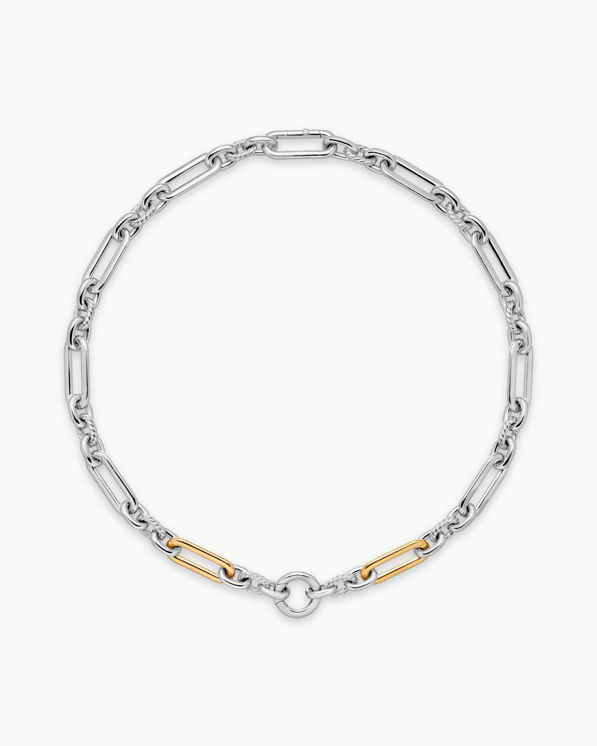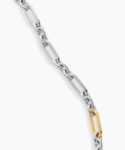 This Lexington design is inspired by the sleek sensibility of ‘30s Manhattan architecture, with clean lines and the juxtaposition of smooth and Cabled metal. Sterling silver with 18-karat bonded yellow goldChain, 9.8mmPush claspThis item can be engraved. Please contact customer care for more information.