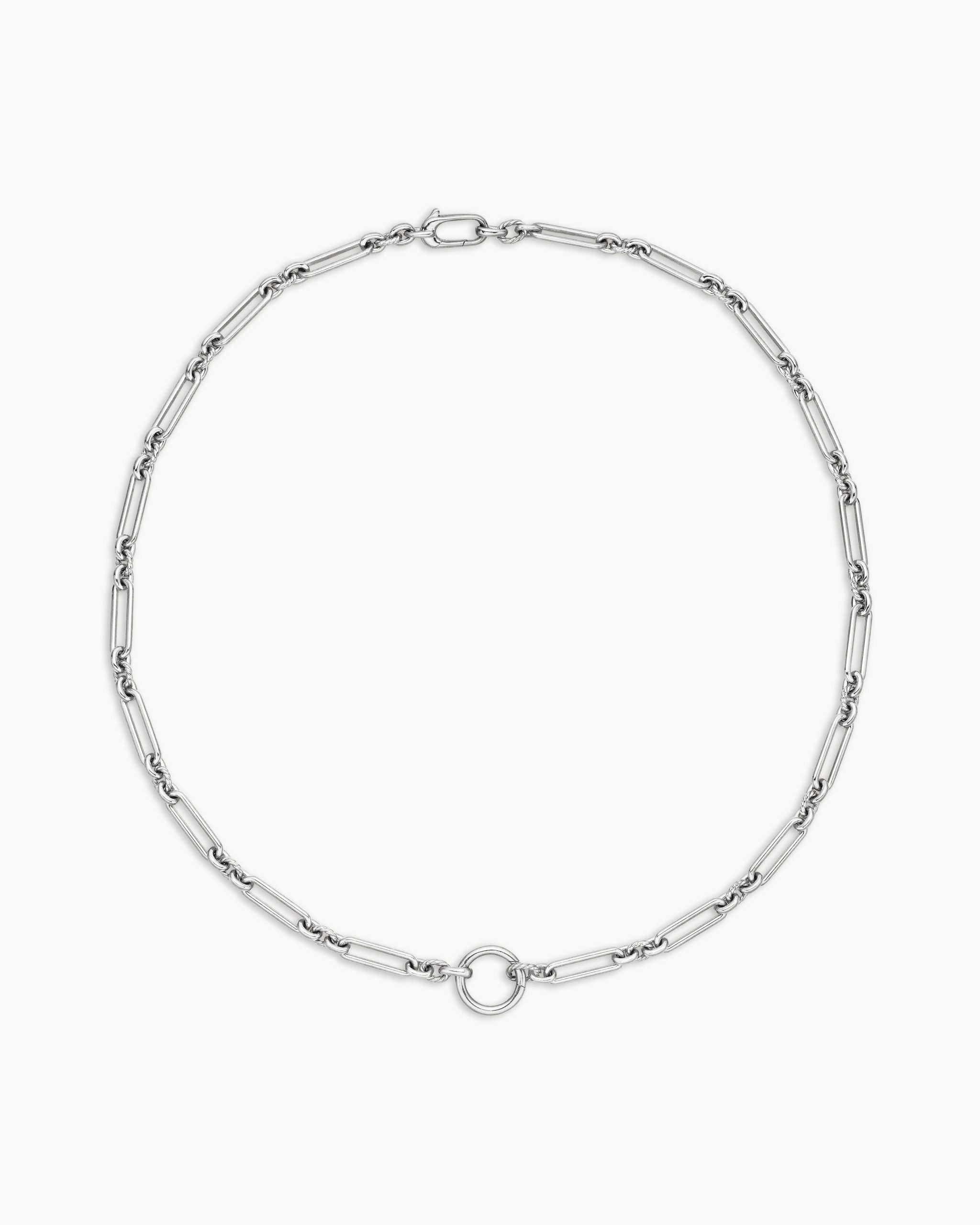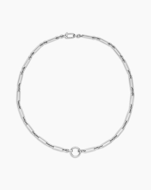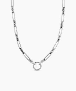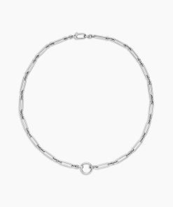 This Lexington design is inspired by the sleek sensibility of ‘30s Manhattan architecture, with clean lines and the juxtaposition of smooth and Cabled metal. Sterling silverChain, 4.5mmPush clasp