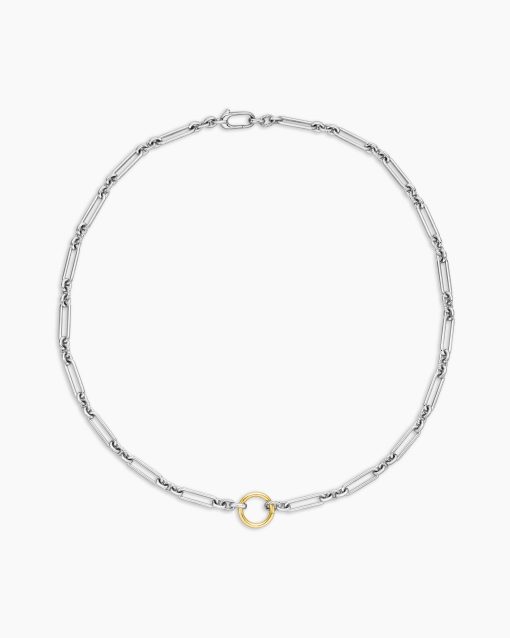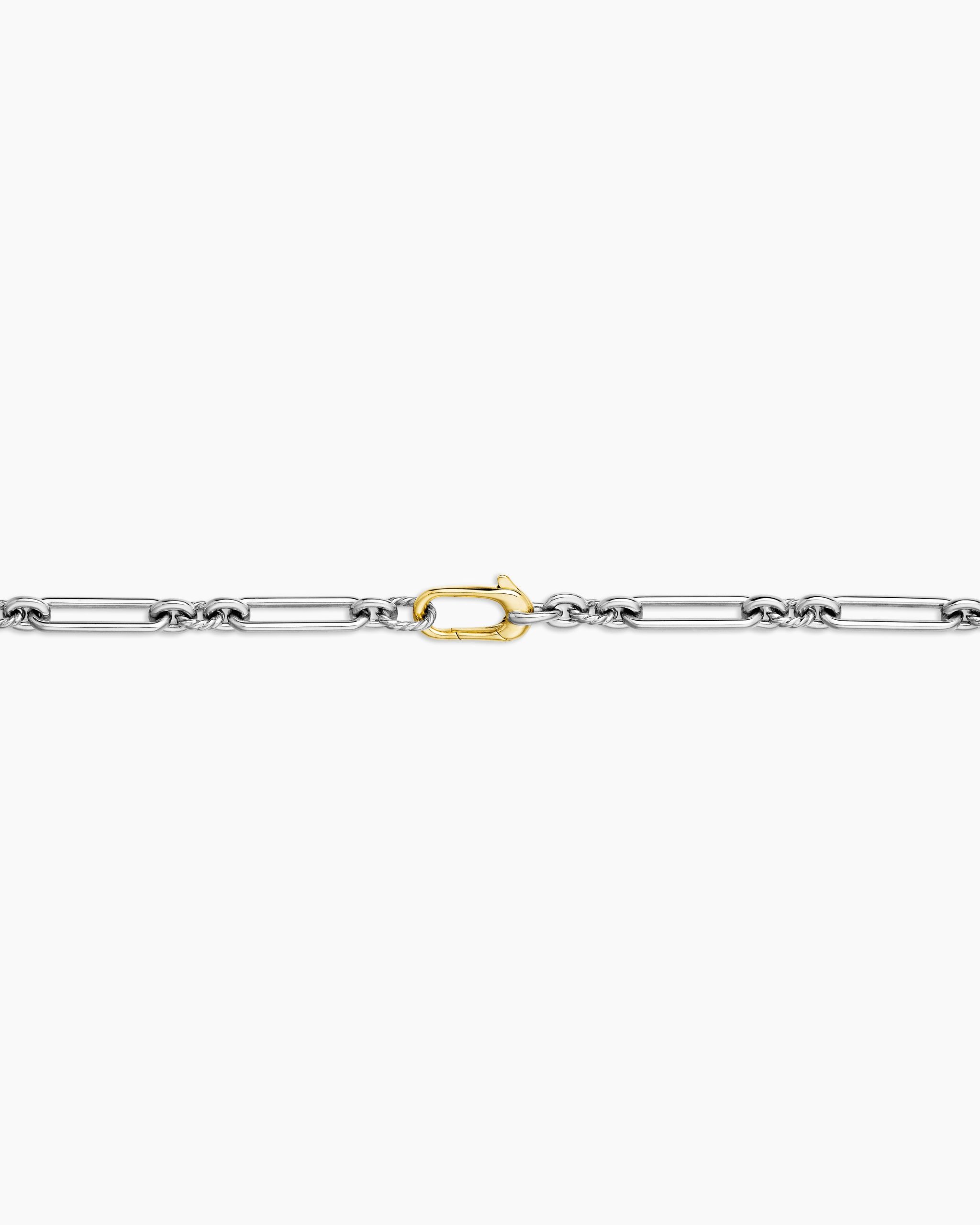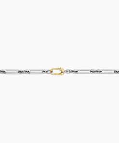 This Lexington design is inspired by the sleek sensibility of ‘30s Manhattan architecture, with clean lines and the juxtaposition of smooth and Cabled metal. Sterling silver with 18-karat yellow goldChain, 4.5mmPush claspThis item can be engraved. Please contact customer care for more information.