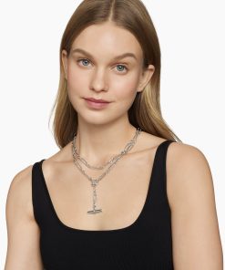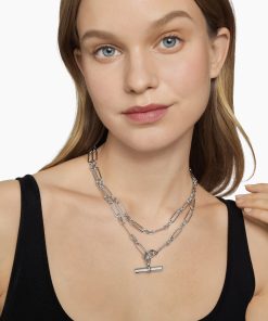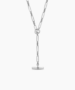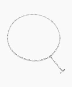 This Lexington design is inspired by the sleek sensibility of ‘30s Manhattan architecture, with clean lines and the juxtaposition of smooth and Cabled metal. Sterling silverPavé diamonds, 0.23 total carat weightAdjustable length, 41.75inChain, 6.5mmToggle claspThis item can be engraved. Please contact customer care for more information.
