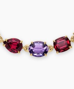 18-karat yellow gold Amethyst and rhodolite garnet, 47.70 total carat weightStones, 10.5-16mmTotal length, 19inNecklace, 8.5mmPush clasp