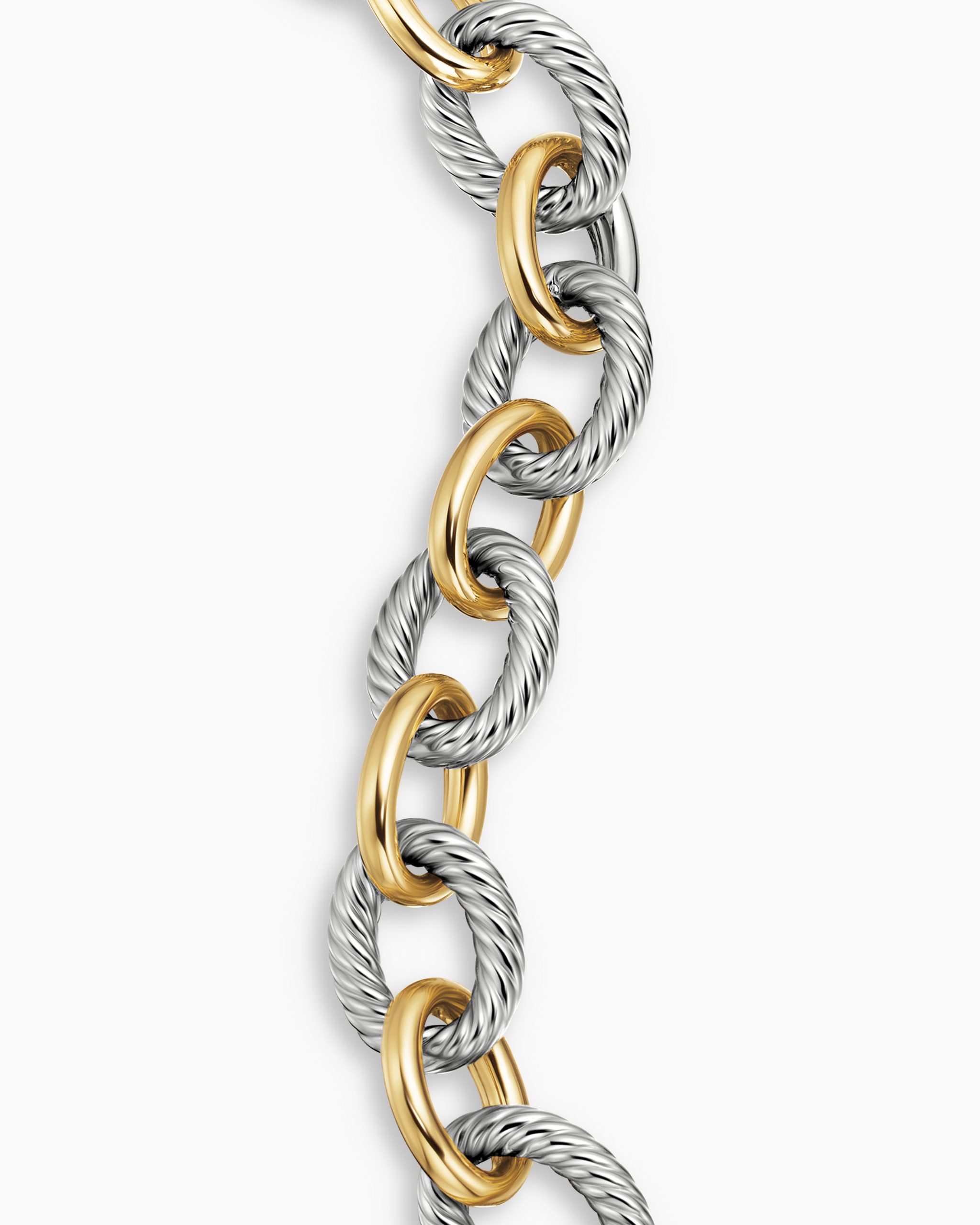 David Yurman chains are inspired by classical and original motifs, and meticulously crafted by artisans. They are designed to be worn alone, layered, or complemented with unique enhancers or charms from our other collections. Sterling Silver with 18-karat bonded Yellow GoldBracelet, 17mmPush clasp