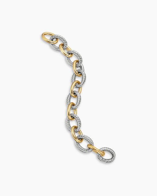 David Yurman chains are inspired by classical and original motifs, and meticulously crafted by artisans. They are designed to be worn alone, layered, or complemented with unique enhancers or charms from our other collections. Sterling Silver with 18-karat bonded Yellow GoldBracelet, 17mmPush clasp