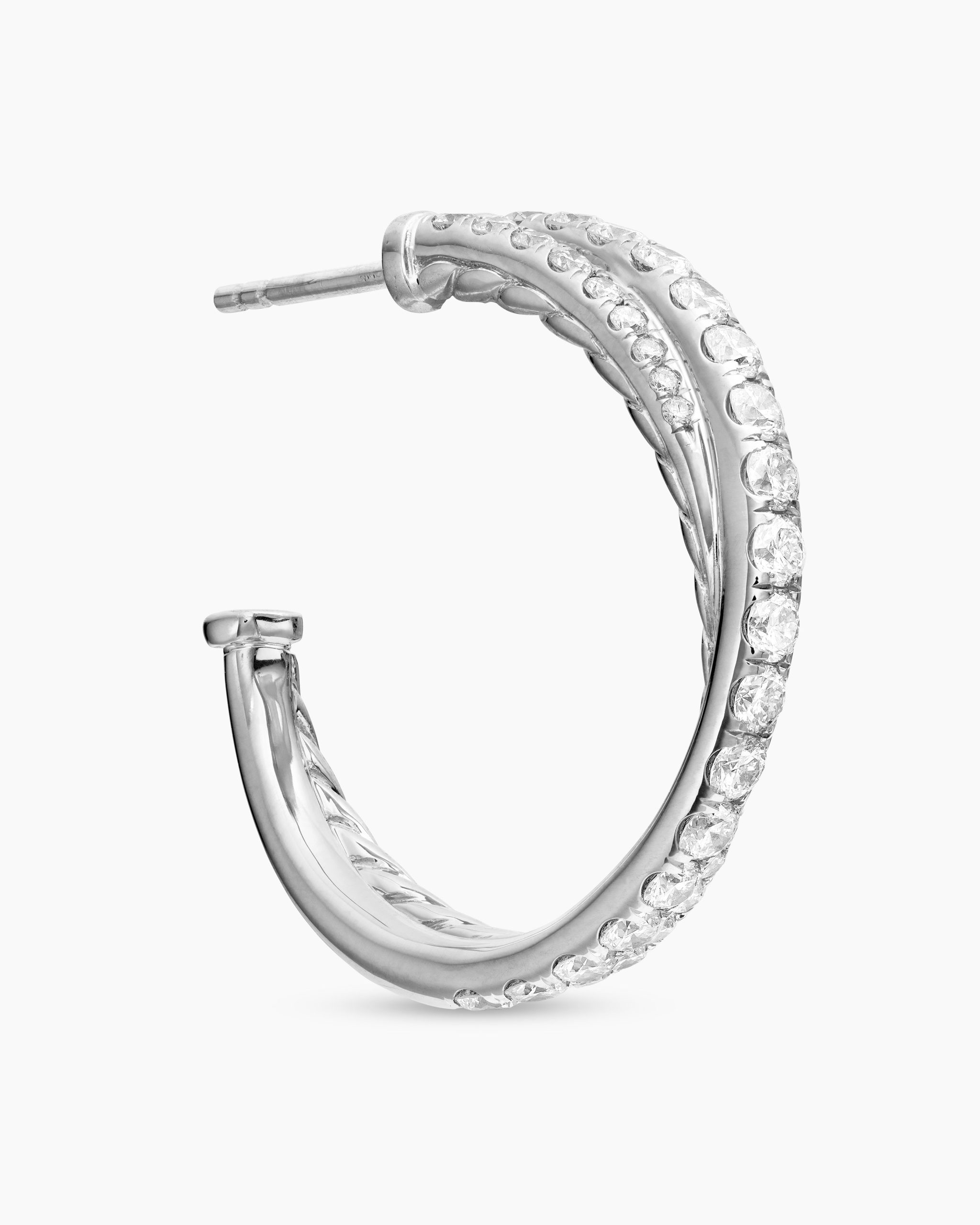 The Crossover Collection® explores the rhythmic weaving of line to create form and movement. Using a dynamic range of smooth and cabled cords, the individual strands are meticulously entwined. 18-karat white goldPavé diamonds, 1.27 total carat weightEarrings, 24 x 5mm