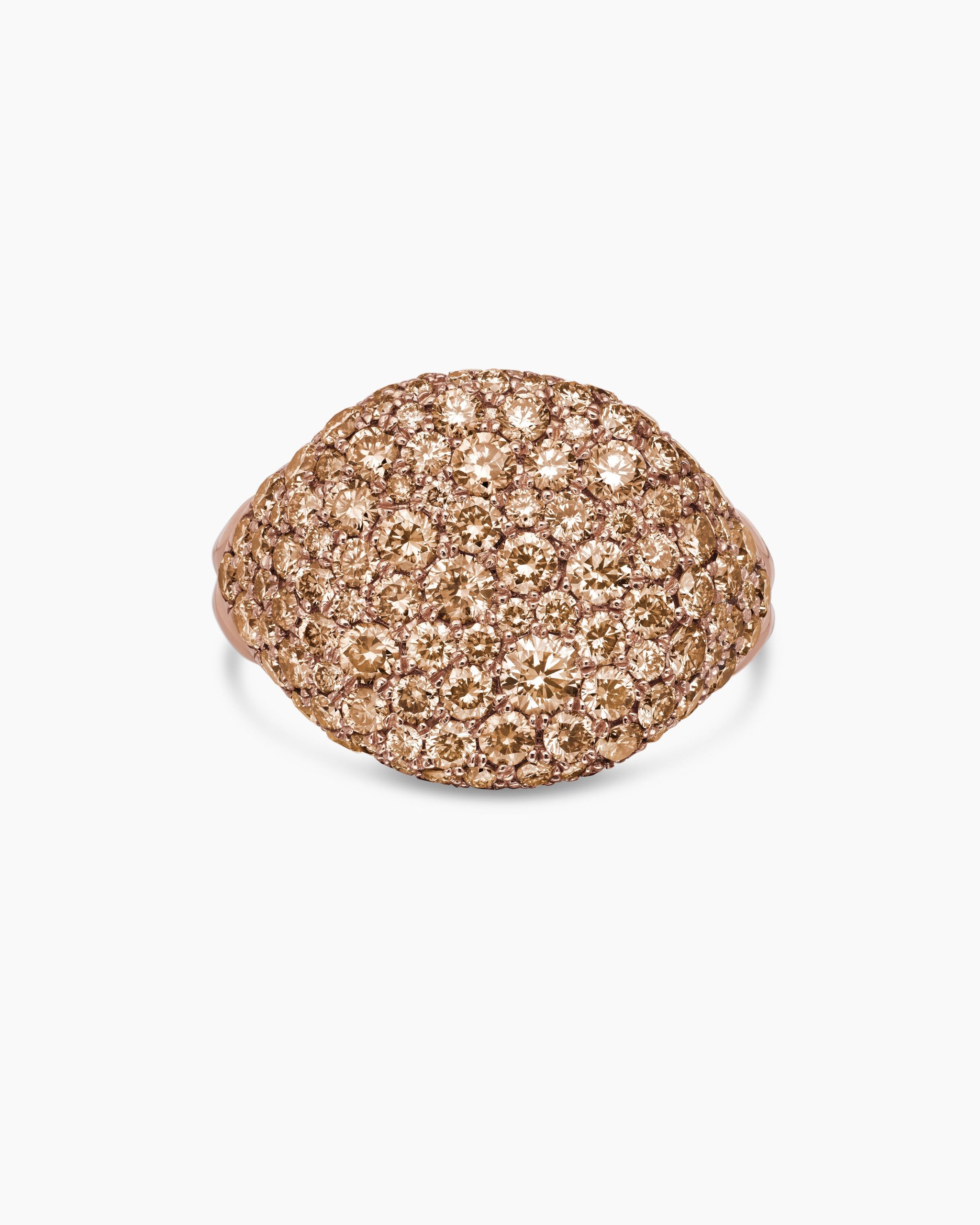 Inspired by the traditional signet ring, the Pinky Ring Collection brings a modern spirit to a classic form with elegant contours. 18-karat rose goldPavé cognac diamonds, 1.79 total carat weightRing, 13mm