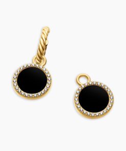 In this collection, David Yurman explores the circle—a timeless symbol of unity, a shape without beginning or end. 18-karat yellow goldBlack onyxPavé diamonds, 0.22 total carat weightEarring drop length, 22.6mmEarring diameter, 11mm