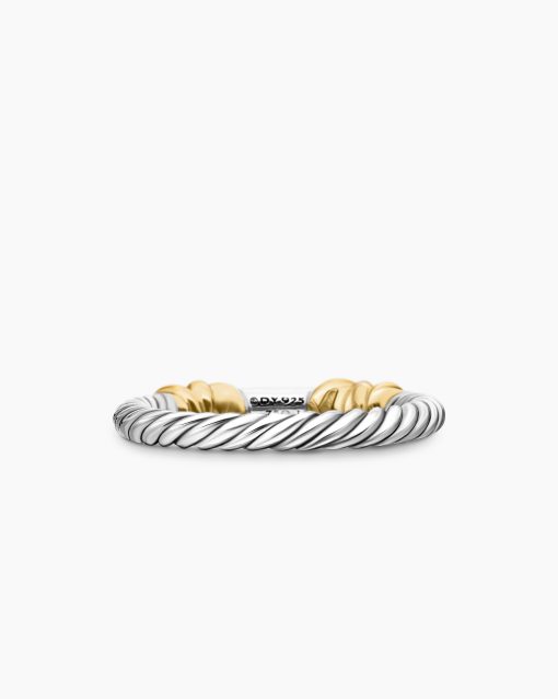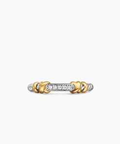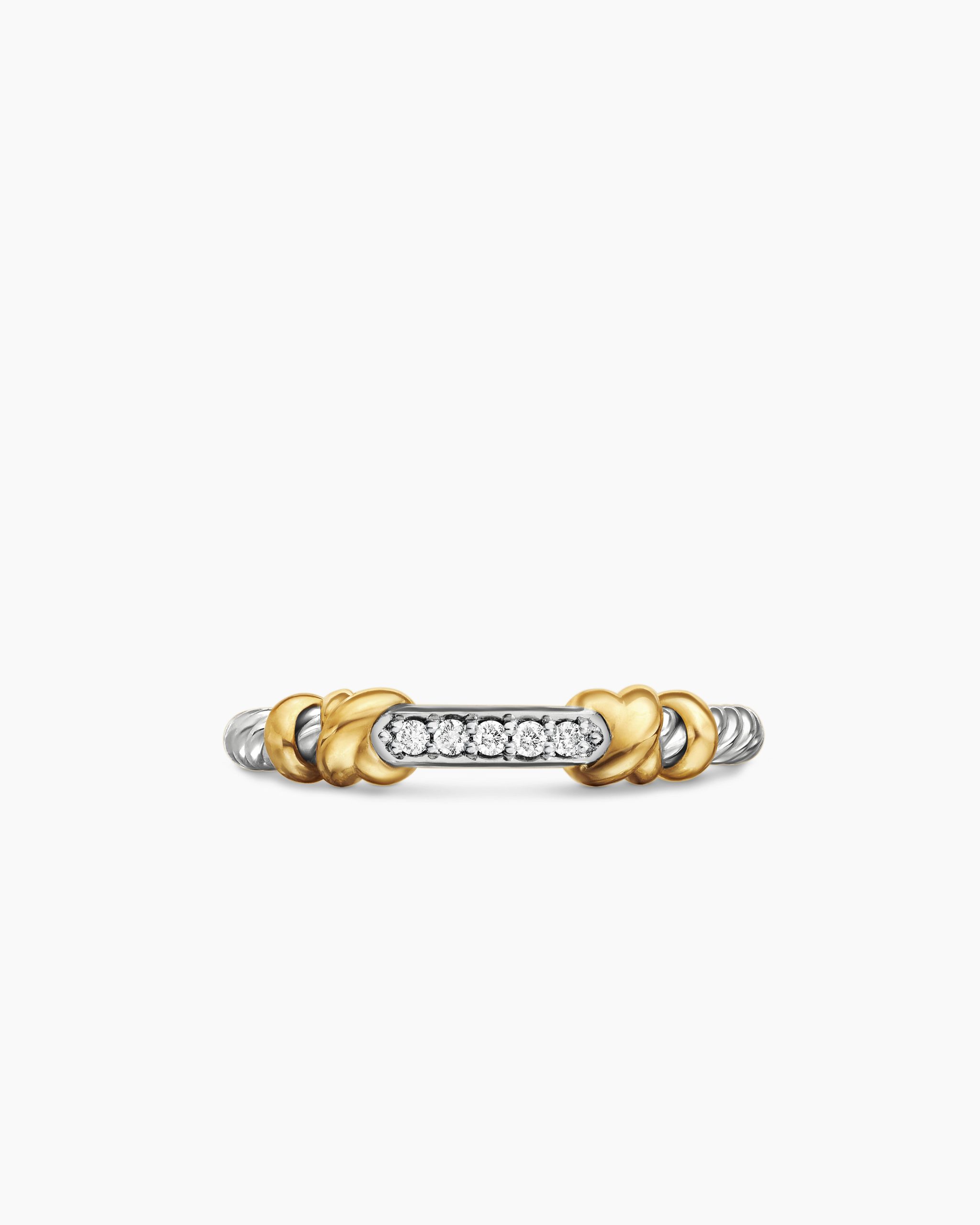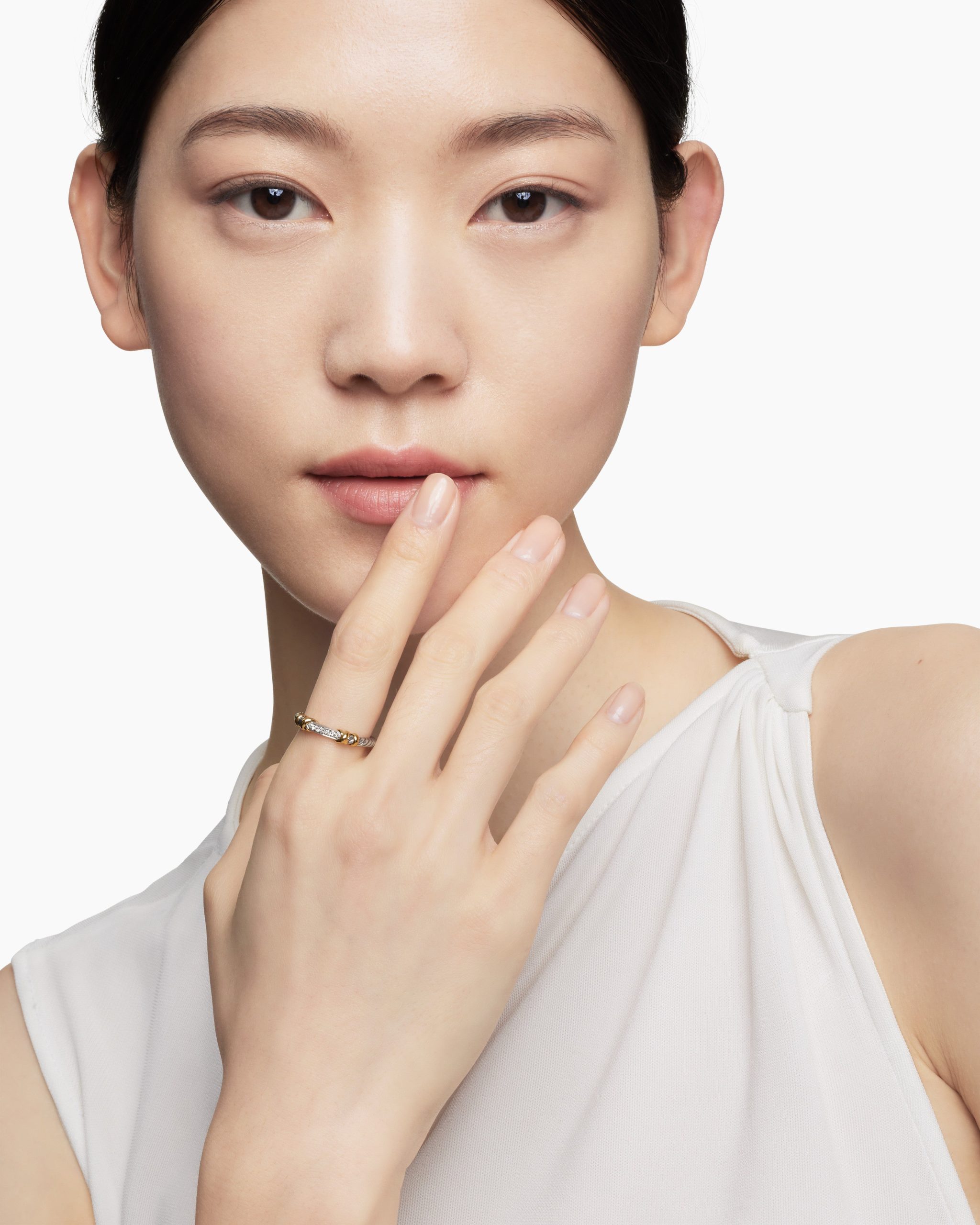 In the Helena Collection, David Yurman returns to the longer, leaner twist of his first handmade Cable bracelet, wrapping the iconic form with 18K yellow gold threads accented with hand-set pavé diamonds. Sterling silver with 18-karat yellow goldPavé diamonds, 0.05 total carat weightRing, 4mm