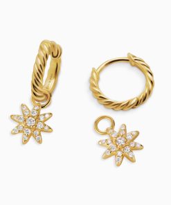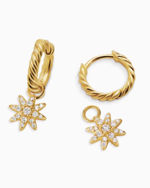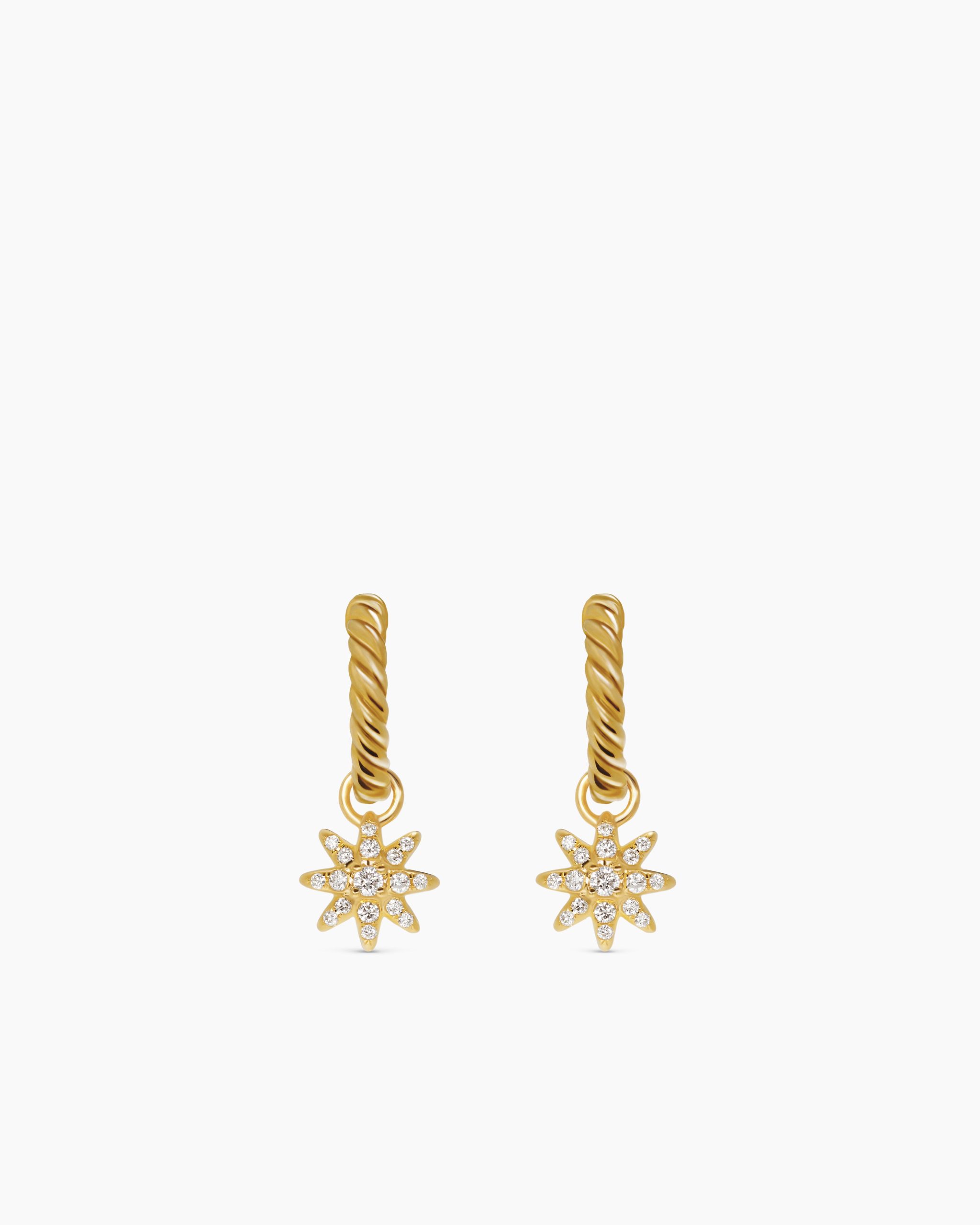 David Yurman’s iconic Cable motif beautifully adorns a universal symbol or shape, creating a modern talisman meant to be collected, combined and treasured. 18-karat yellow goldPavé-set diamonds, 0.13 total carat weightEarring drop length, 18.1mmStarburst drop is removeable and can be worn as a hoop.