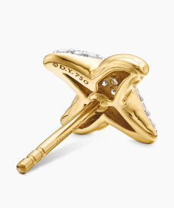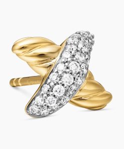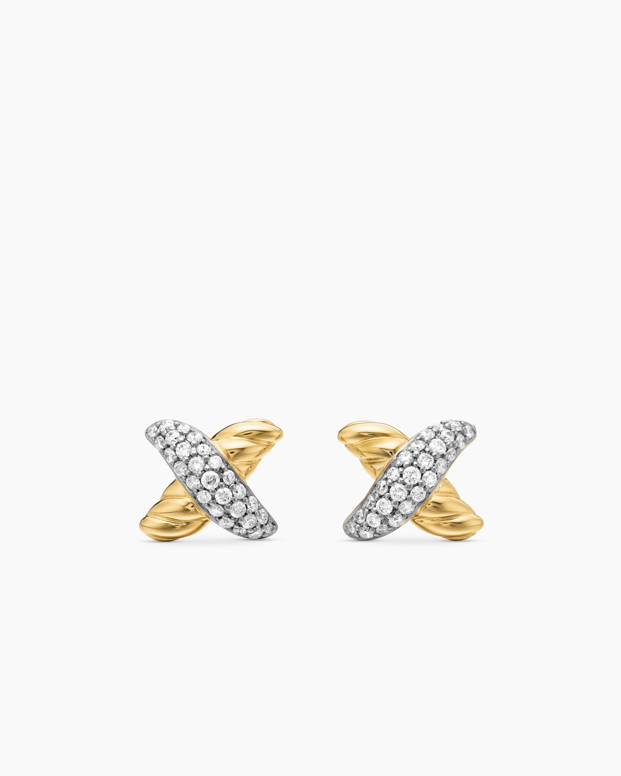 One of David Yurman’s most iconic designs, the X Collection was inspired by his wife Sybil’s painting of the ancient mark. Classic yet contemporary, the collection epitomizes his approach to design. 18-karat yellow gold Pavé diamonds, 0.21 total carat weightEarrings, 8.4 x 9mm