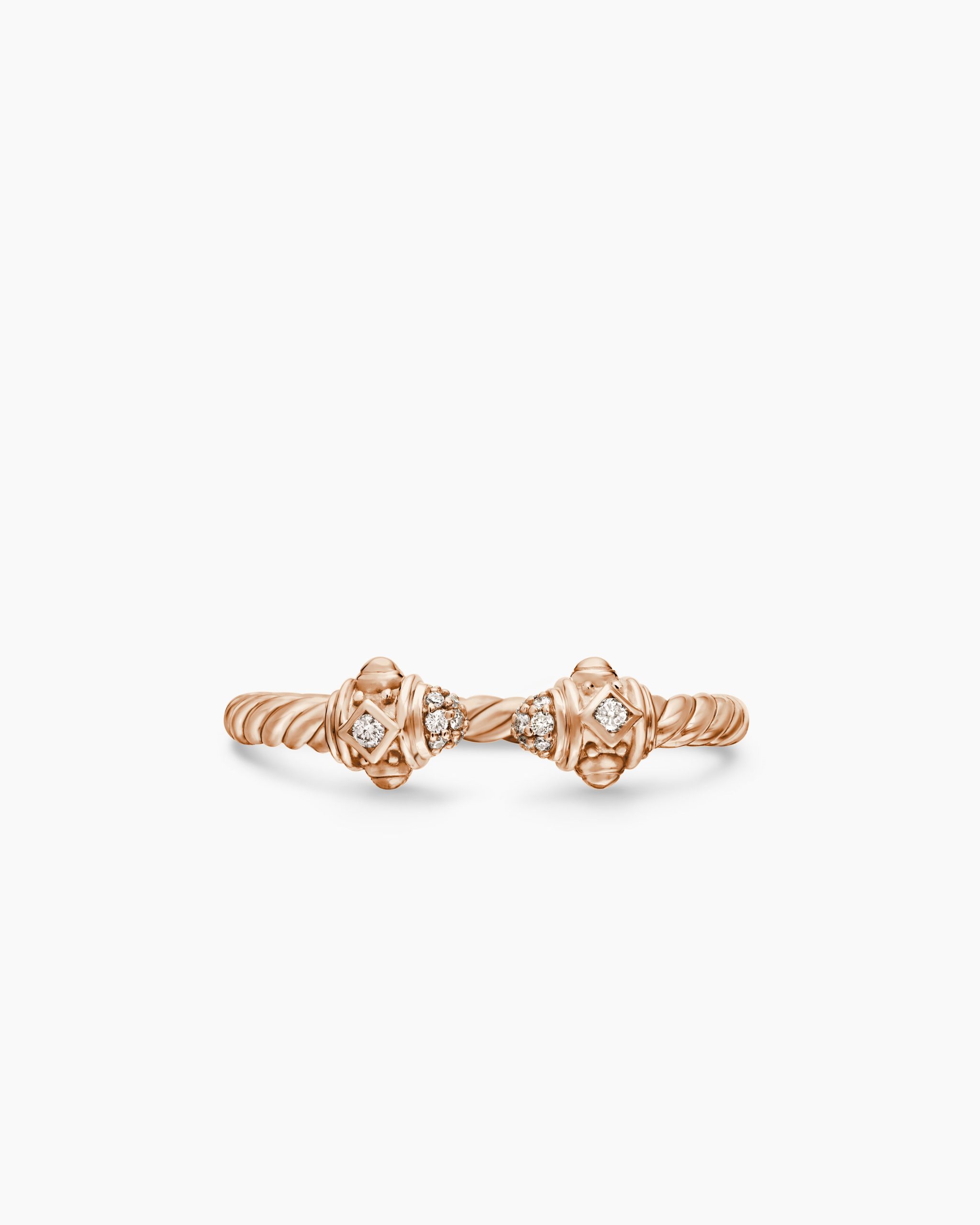 DY Renaissance® merges sculptural form with the brilliant jewel tones found in classical painting to produce a collection that is quintessential David Yurman. 18-karat rose goldPavé diamonds, 0.06 total carat weightRing, 2.3mmCablespira® is a patented DY construction that is highly flexible and exceptionally comfortable to wear.