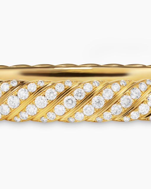 Inspired by his love of architecture and bas-relief sculpture, Evan Yurman designed this modern form by deconstructing Cable—the house’s signature motif—to its essence. Each design is a wearable work of art; precious metals are meticulously carved with exquisite wavelike patterns that dramatically catch the light. Elegant curves highlight the sensuality of the body, with pavé-set diamonds for a statement of added brilliance.18-karat yellow goldPavé-set diamonds, total carat weight ranges from 2.65 – 3.06 (dependent on size)Bracelet, 8mmPush clasp