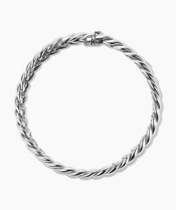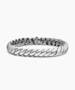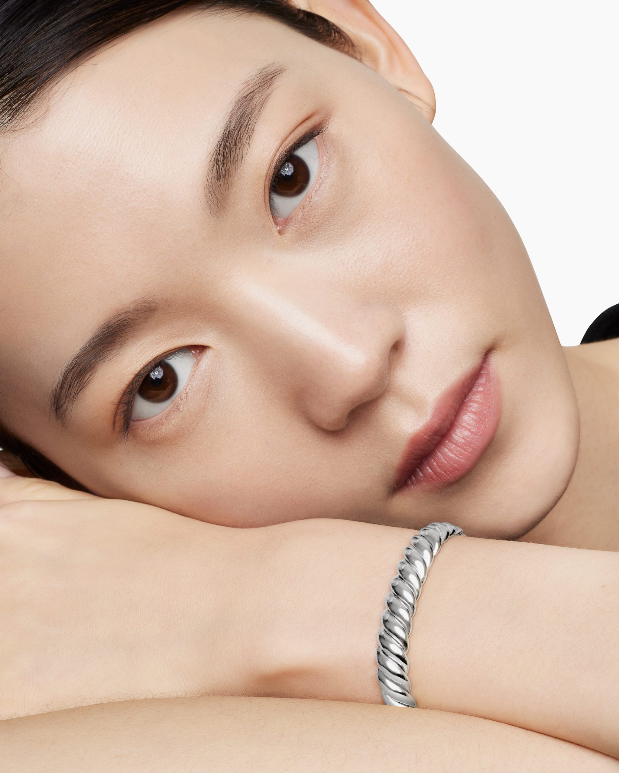 Inspired by his love of architecture and bas-relief sculpture, Evan Yurman designed this modern form by deconstructing Cable—the house’s signature motif—to its essence. Each timeless design is a wearable work of art. Precious metals are meticulously carved with mesmerizing wavelike patterns that dramatically catch the light. Elegant curves highlight the sensuality of the body.Sterling silverBracelet, 8.5mmBox clasp