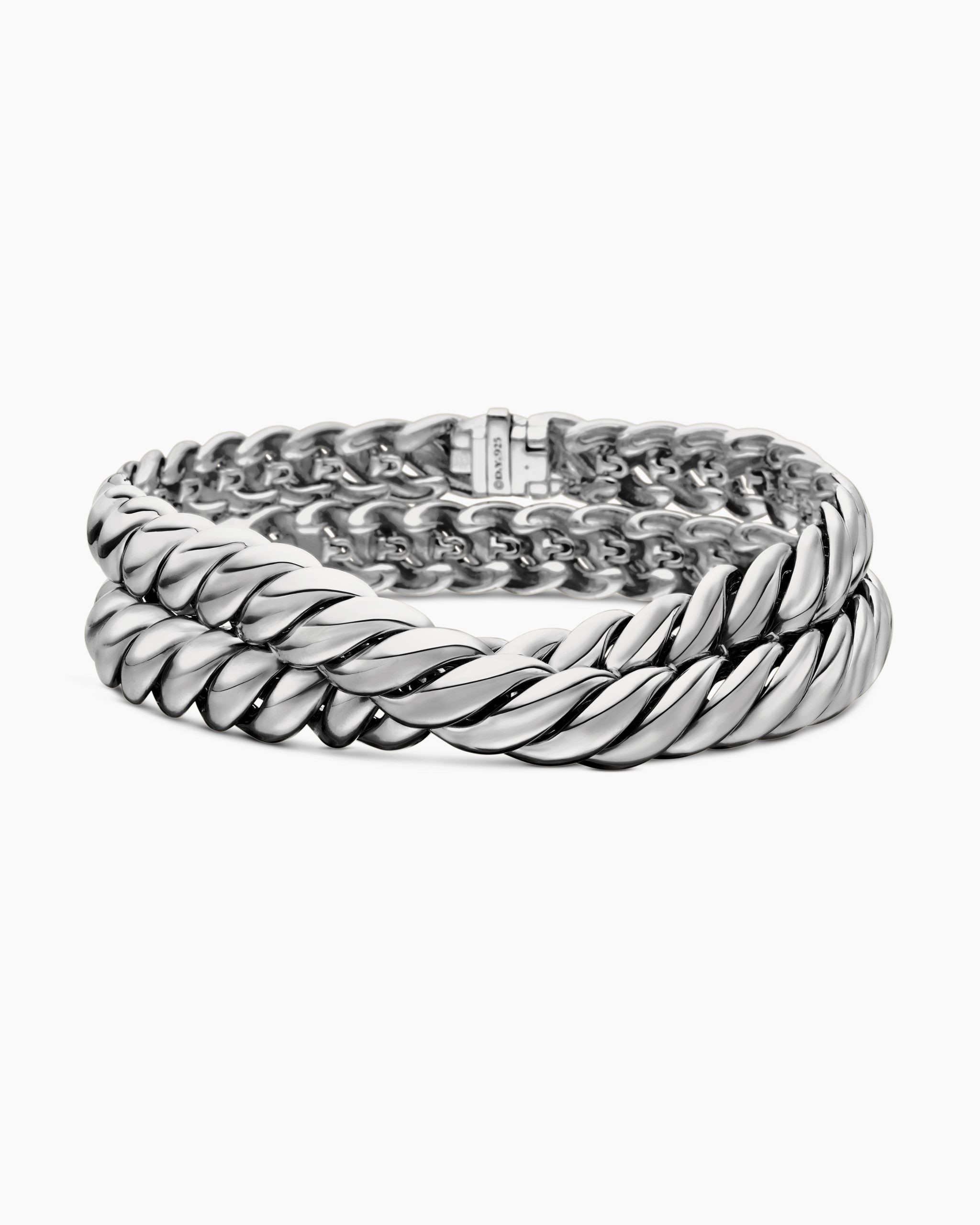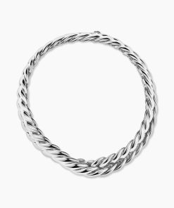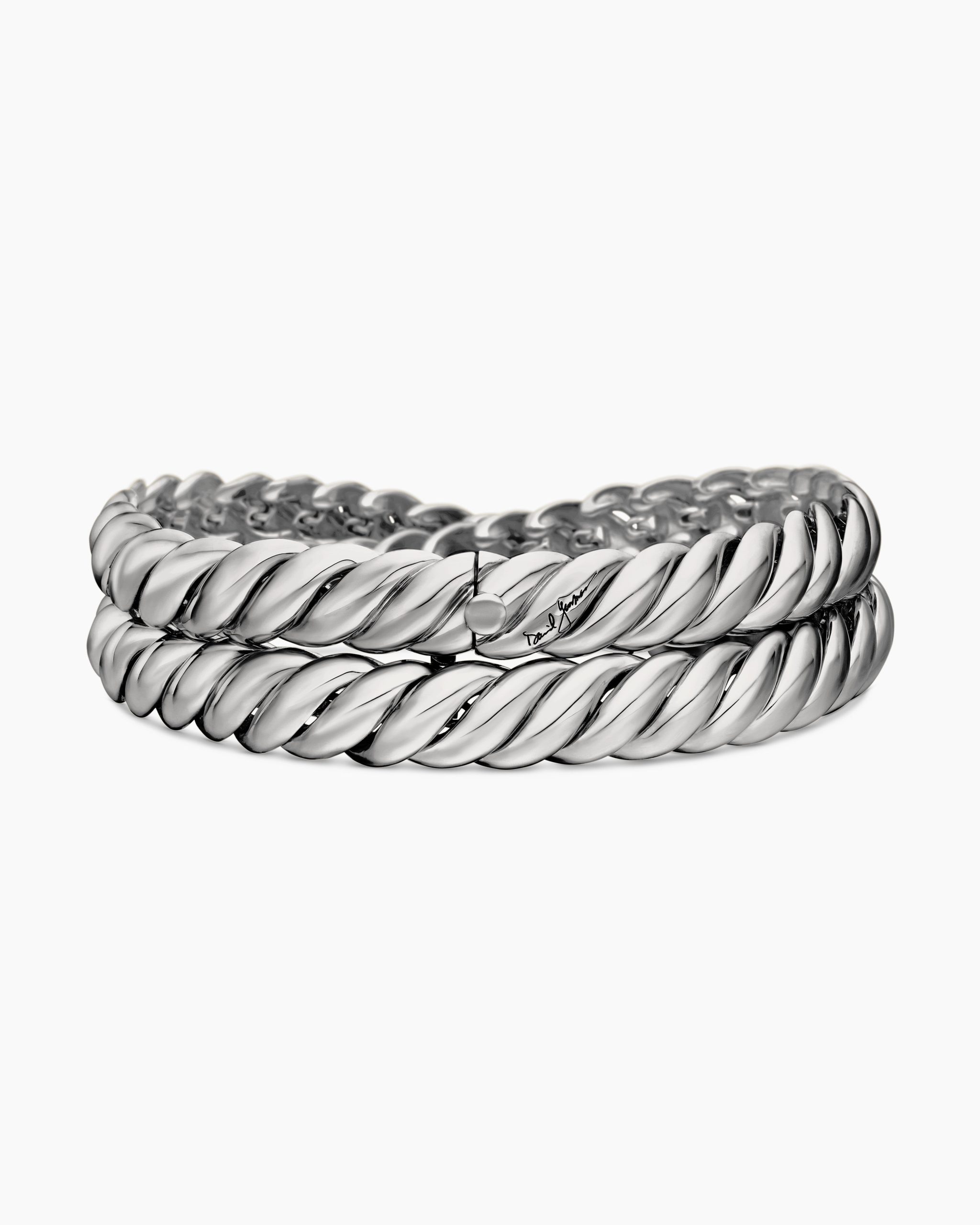 Inspired by his love of architecture and bas-relief sculpture, Evan Yurman designed this modern form by deconstructing Cable—the house’s signature motif—to its essence. Each timeless design is a wearable work of art. Precious metals are meticulously carved with mesmerizing wavelike patterns that dramatically catch the light. Elegant curves highlight the sensuality of the body.Sterling silverBracelet, 8.5mmBox clasp