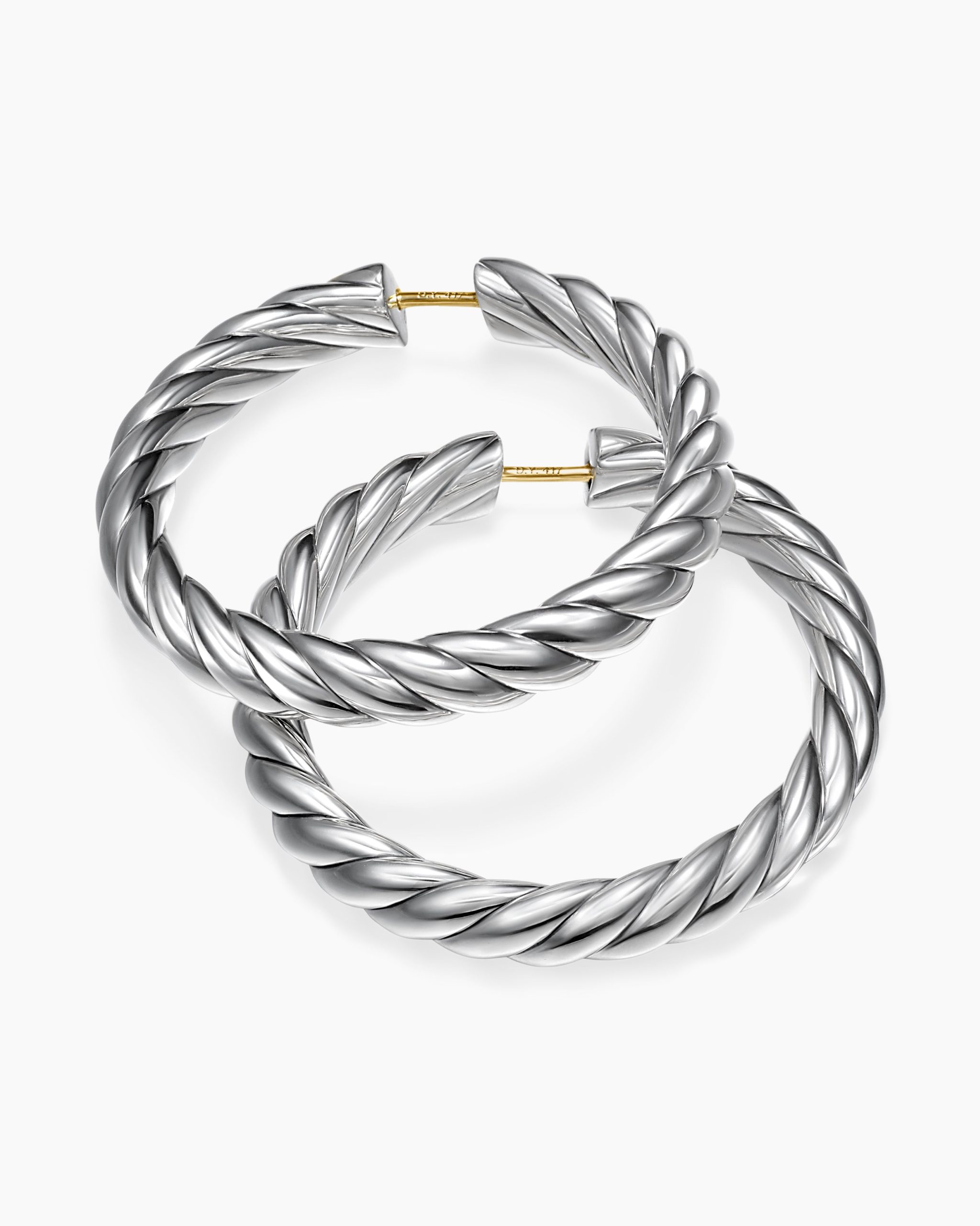 In Sculpted Cable, David Yurman transforms his signature design motif into a carved form. The effect is an entrancing wavelike pattern that retains the dimensional look of Cable’s original helix. Sterling silverEarrings, 40 x 5.8mm
