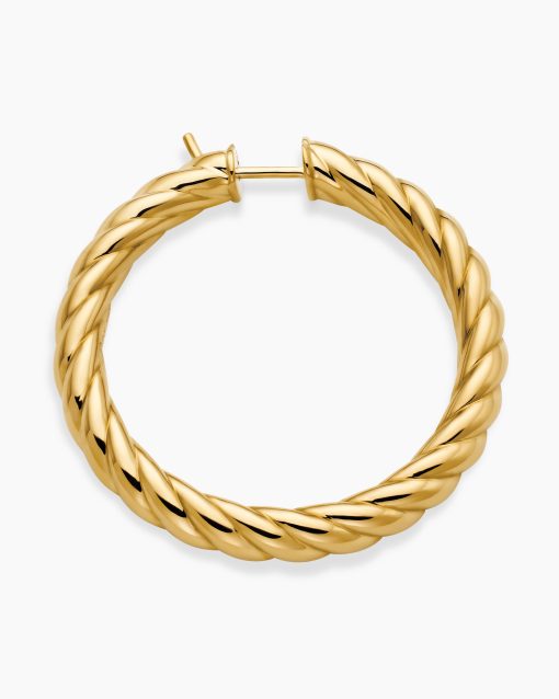 In Sculpted Cable, David Yurman transforms his signature design motif into a carved form. The effect is an entrancing wavelike pattern that retains the dimensional look of Cable’s original helix. 18-karat yellow goldEarrings, 38 x 5.4mm