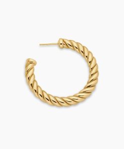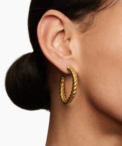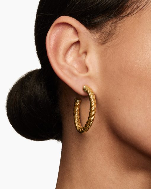 In Sculpted Cable, David Yurman transforms his signature design motif into a carved form. The effect is an entrancing wavelike pattern that retains the dimensional look of Cable’s original helix. 18-karat yellow gold Earrings, 40 x 5.8mm
