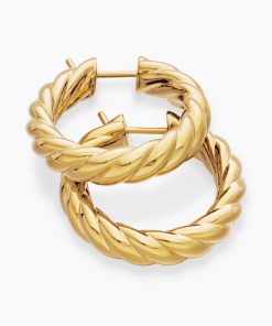 In Sculpted Cable, David Yurman transforms his signature design motif into a carved form. The effect is an entrancing wavelike pattern that retains the dimensional look of Cable’s original helix. 18-karat yellow goldEarrings, 25.4 x 5.4mm