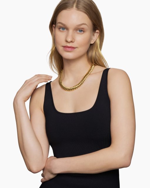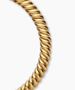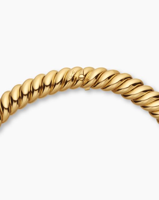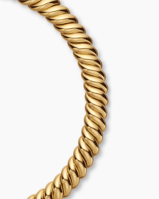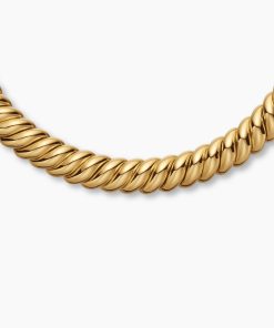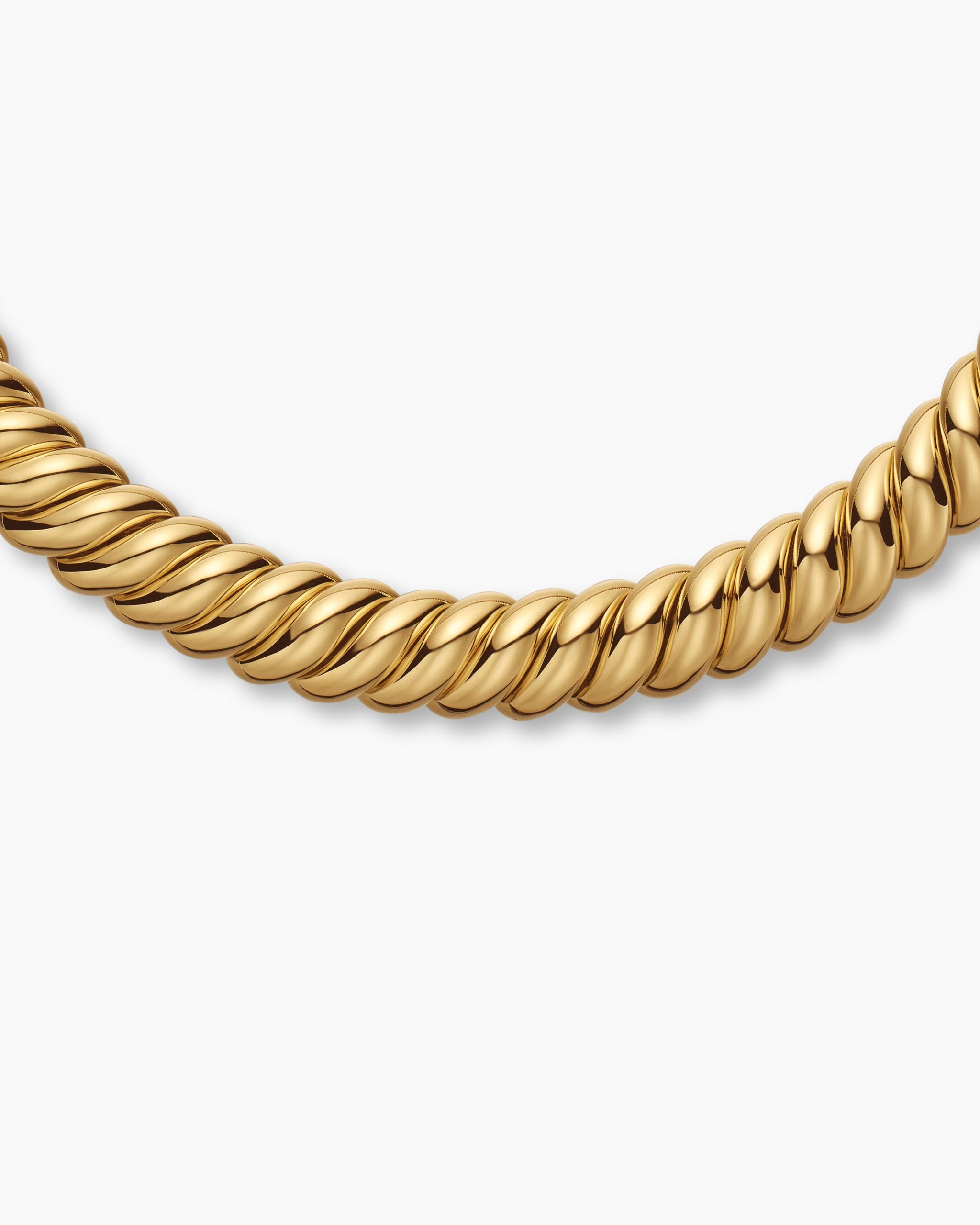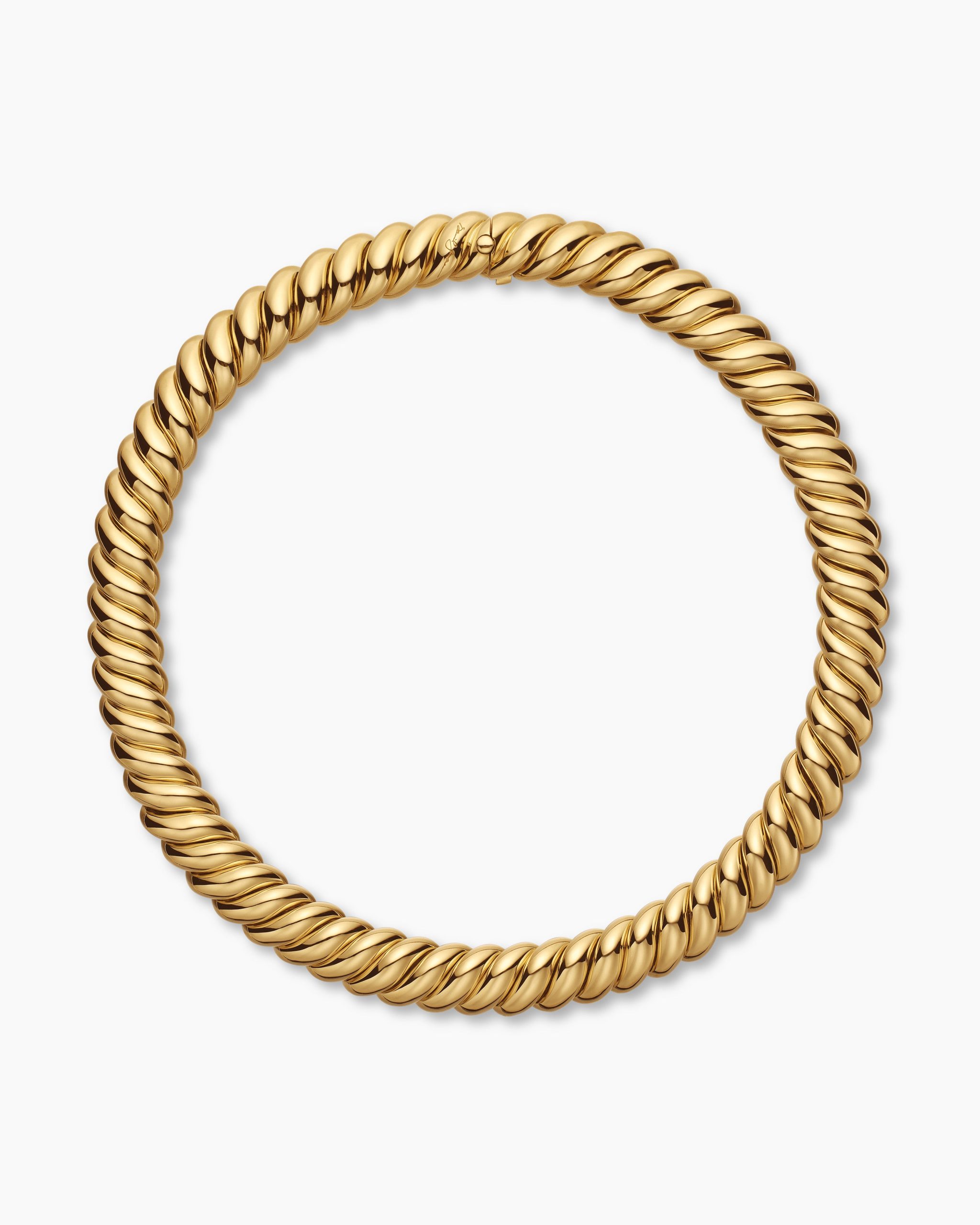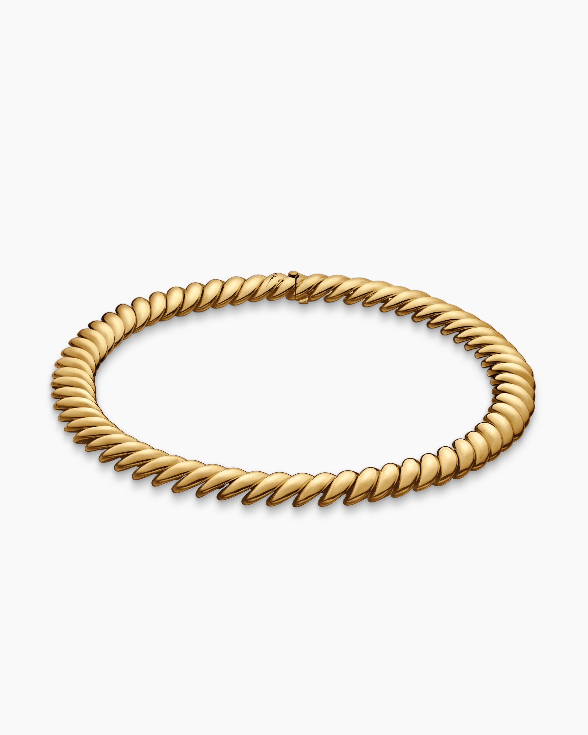 Inspired by his love of architecture and bas-relief sculpture, Evan Yurman designed this modern form by deconstructing Cable—the house’s signature motif—to its essence. Each timeless design is a wearable work of art. Precious metals are meticulously carved with mesmerizing wavelike patterns that dramatically catch the light. Elegant curves highlight the sensuality of the body.18-karat yellow goldNecklace, 14mmBox clasp