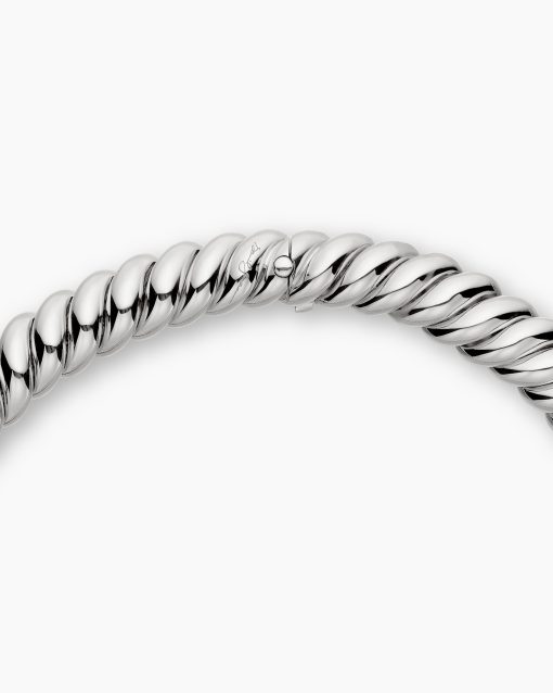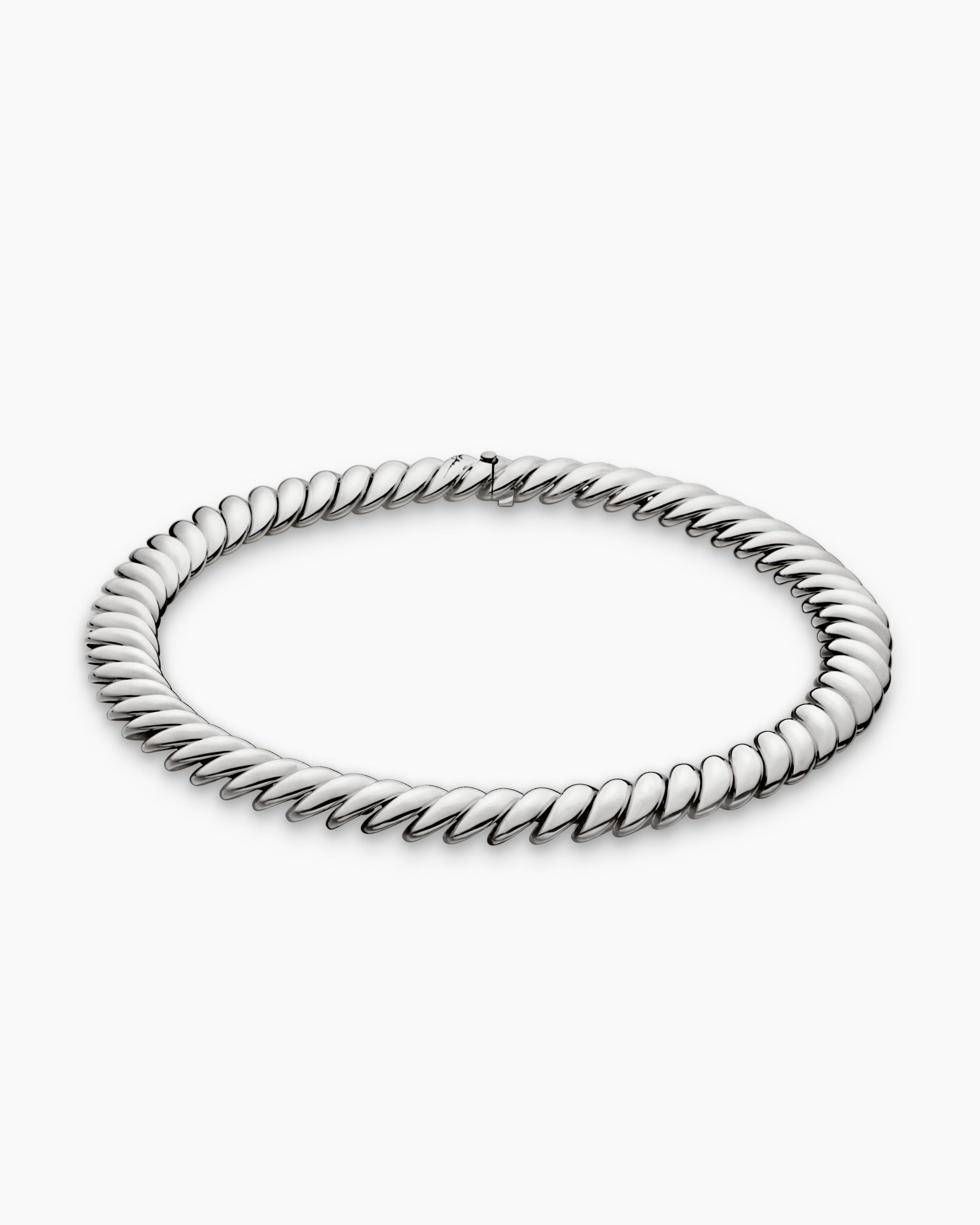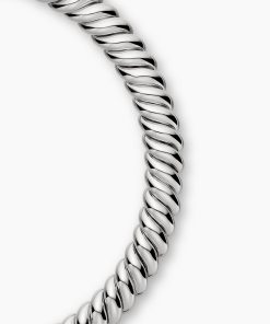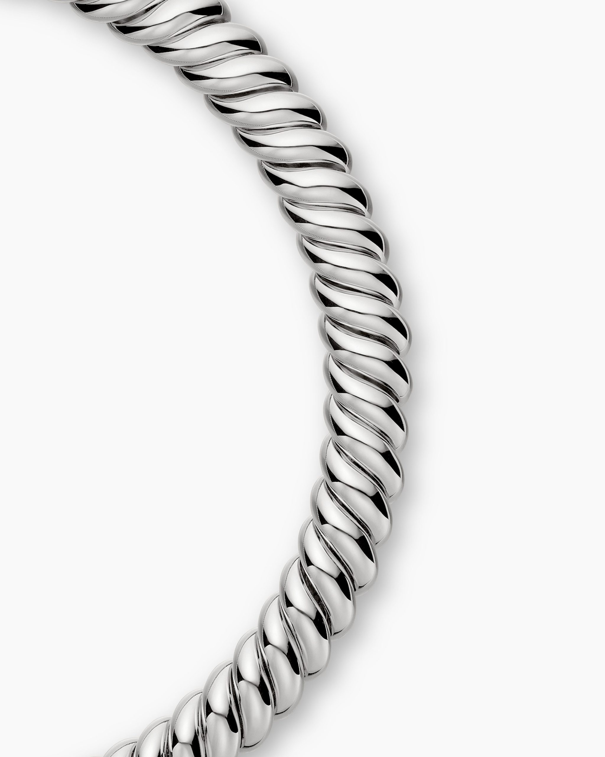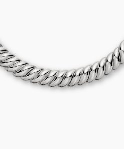 Inspired by his love of architecture and bas-relief sculpture, Evan Yurman designed this modern form by deconstructing Cable—the house’s signature motif—to its essence. Each timeless design is a wearable work of art. Precious metals are meticulously carved with mesmerizing wavelike patterns that dramatically catch the light. Elegant curves highlight the sensuality of the body.Sterling silverNecklace, 14mmBox clasp