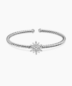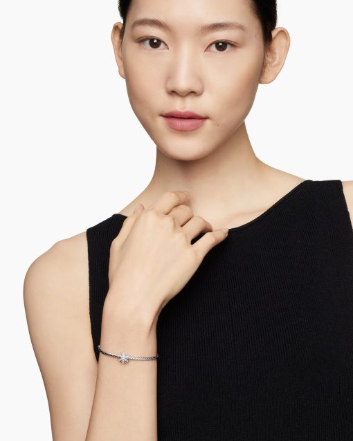 Starburst was born from David and Sybil Yurman’s experience watching fireworks illuminate the Paris night sky. The magical bursts of light greatly moved Sybil, inspiring David to create designs of brilliant star motifs. Sterling silverPavé diamonds, 0.18 total carat weightBracelet, 3mmStation, 13 x 12mm