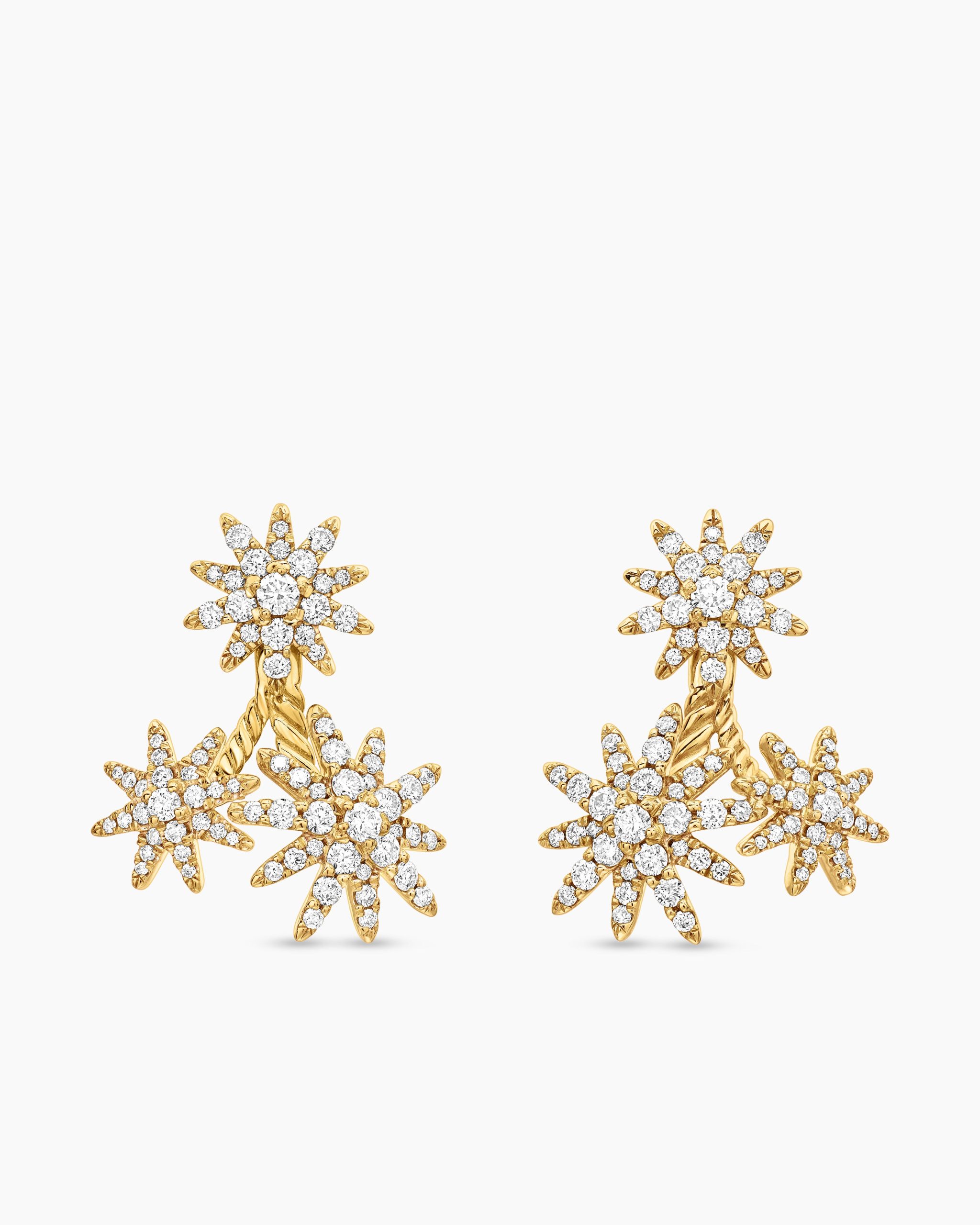 Starburst was born from David and Sybil Yurman’s experience watching fireworks illuminate the Paris night sky. The magical bursts of light greatly moved Sybil, inspiring David to create designs of brilliant star motifs. 18-karat yellow goldPavé diamonds, 1.31 total carat weightEarring drop length, 23.7mm