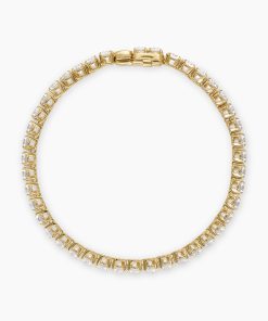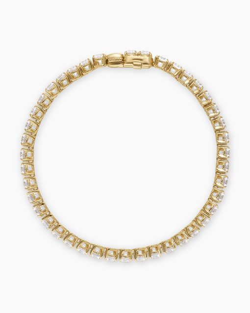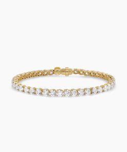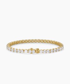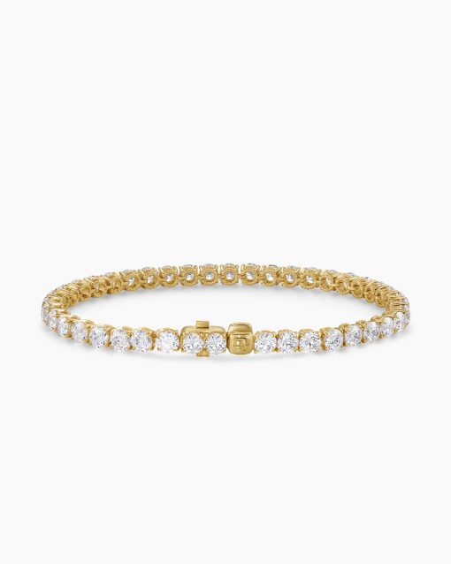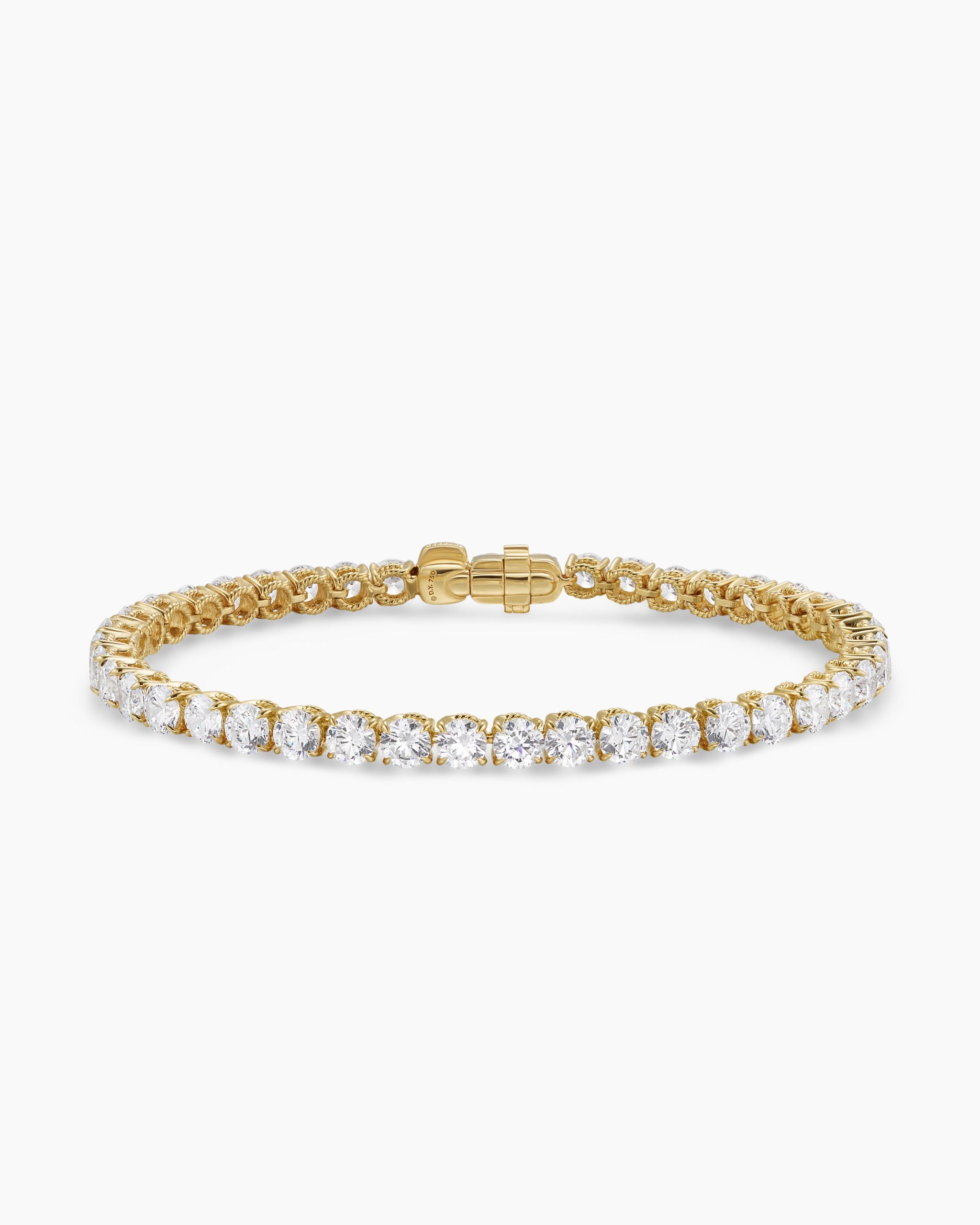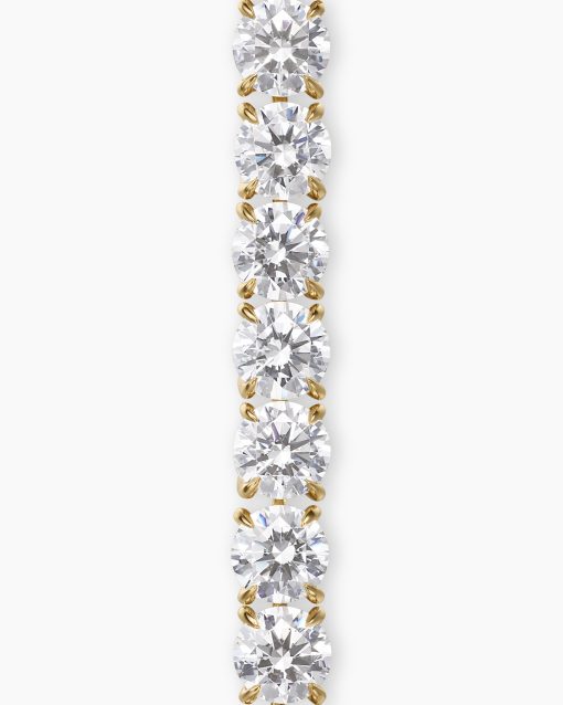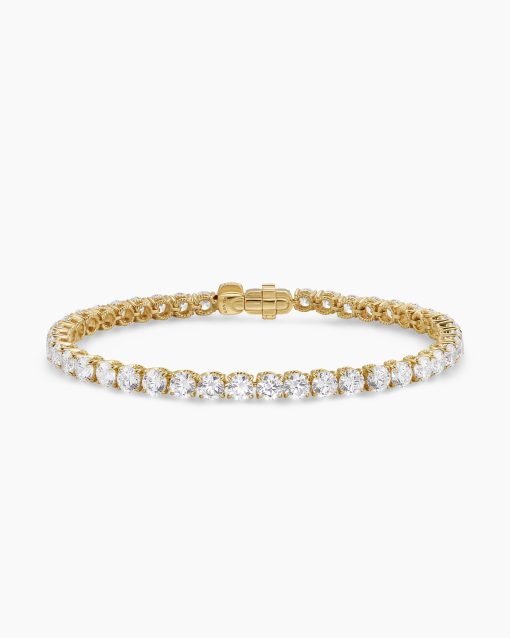 Ever since Chris Evert’s diamond bracelet flew off her wrist at the 1978 US Open, this style has been known as a “tennis bracelet”—a continuous line of bezel or prong-set diamonds. Now expanded to include necklaces, our elegant new additions come in both 18K yellow and white gold with hand-set stones.18-karat yellow goldProng-set diamonds, 10.5 total carat weightBracelet, 4mmPush clasp