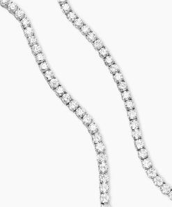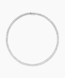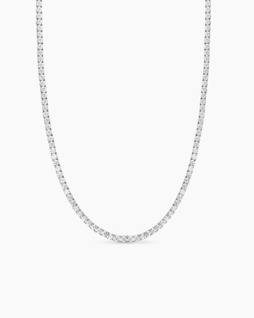 Ever since Chris Evert’s diamond bracelet flew off her wrist at the 1978 US Open, this style has been known as a “tennis bracelet”—a continuous line of bezel or prong-set diamonds. Now expanded to include necklaces, our elegant new additions come in both 18K yellow and white gold with hand-set stones.18-karat white goldProng-set diamonds, 26.25 total carat weight Necklace, 4mmPush clasp