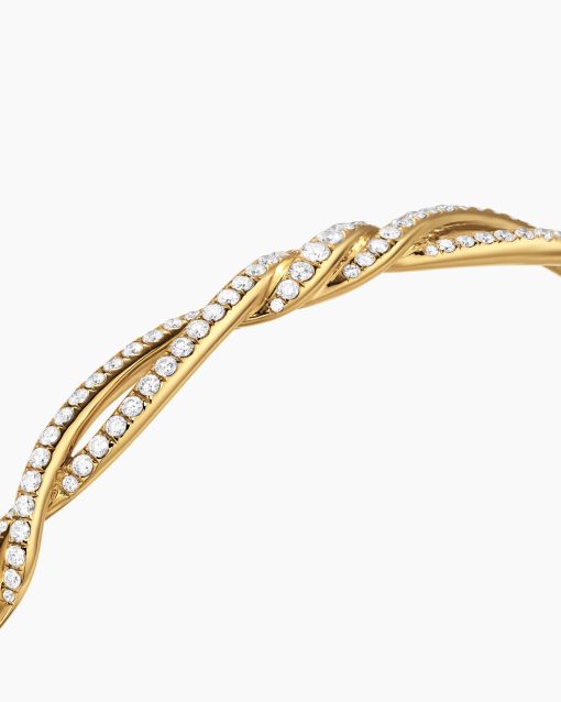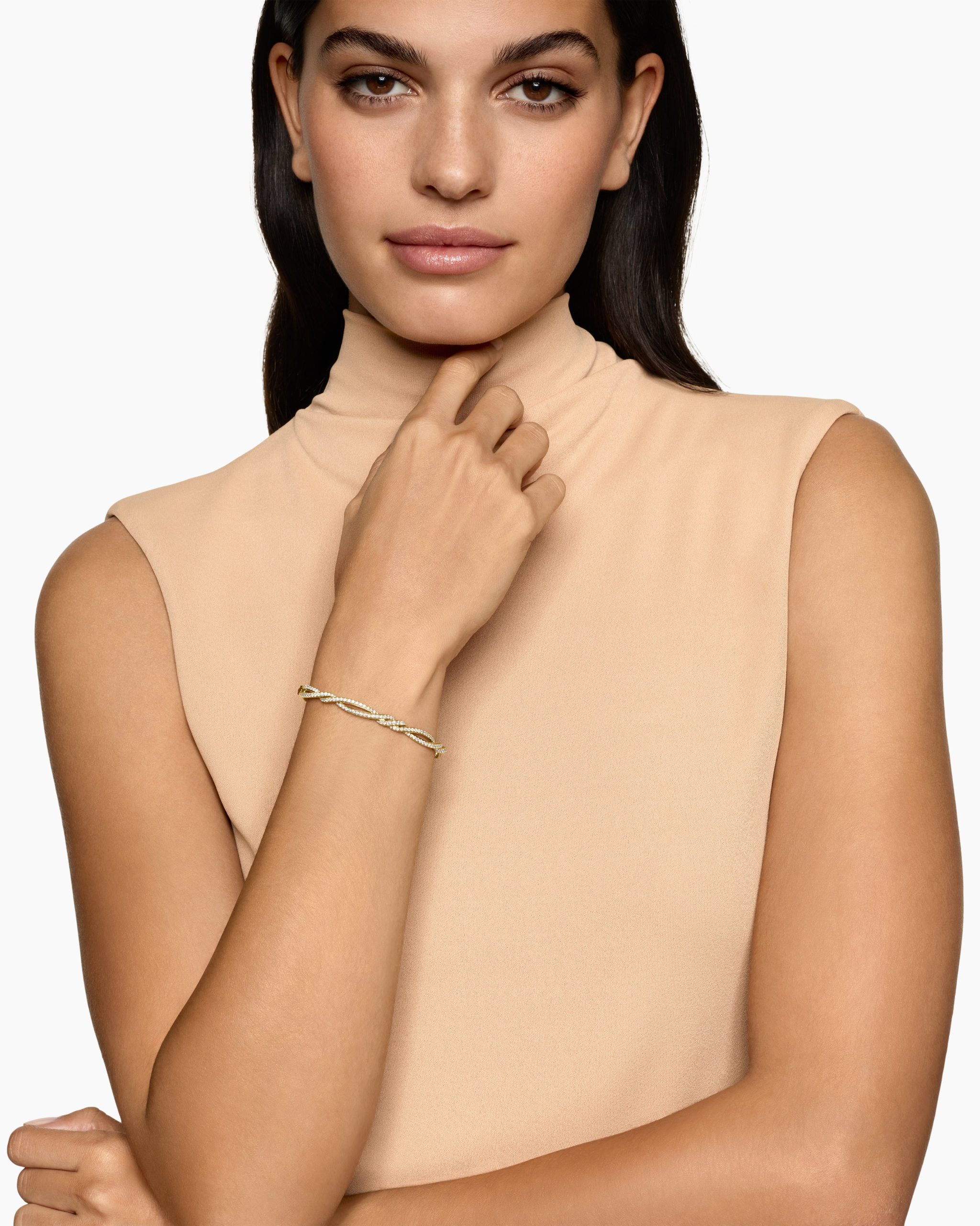 This elegant interpretation of our signature Cable form is inspired by the organic twists of the wisteria vine.18-karat yellow goldPavé-set diamonds, total carat weight ranges from 1.03 – 1.20 (dependent on size)Bracelet, 5.4mmHinge clasp