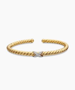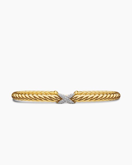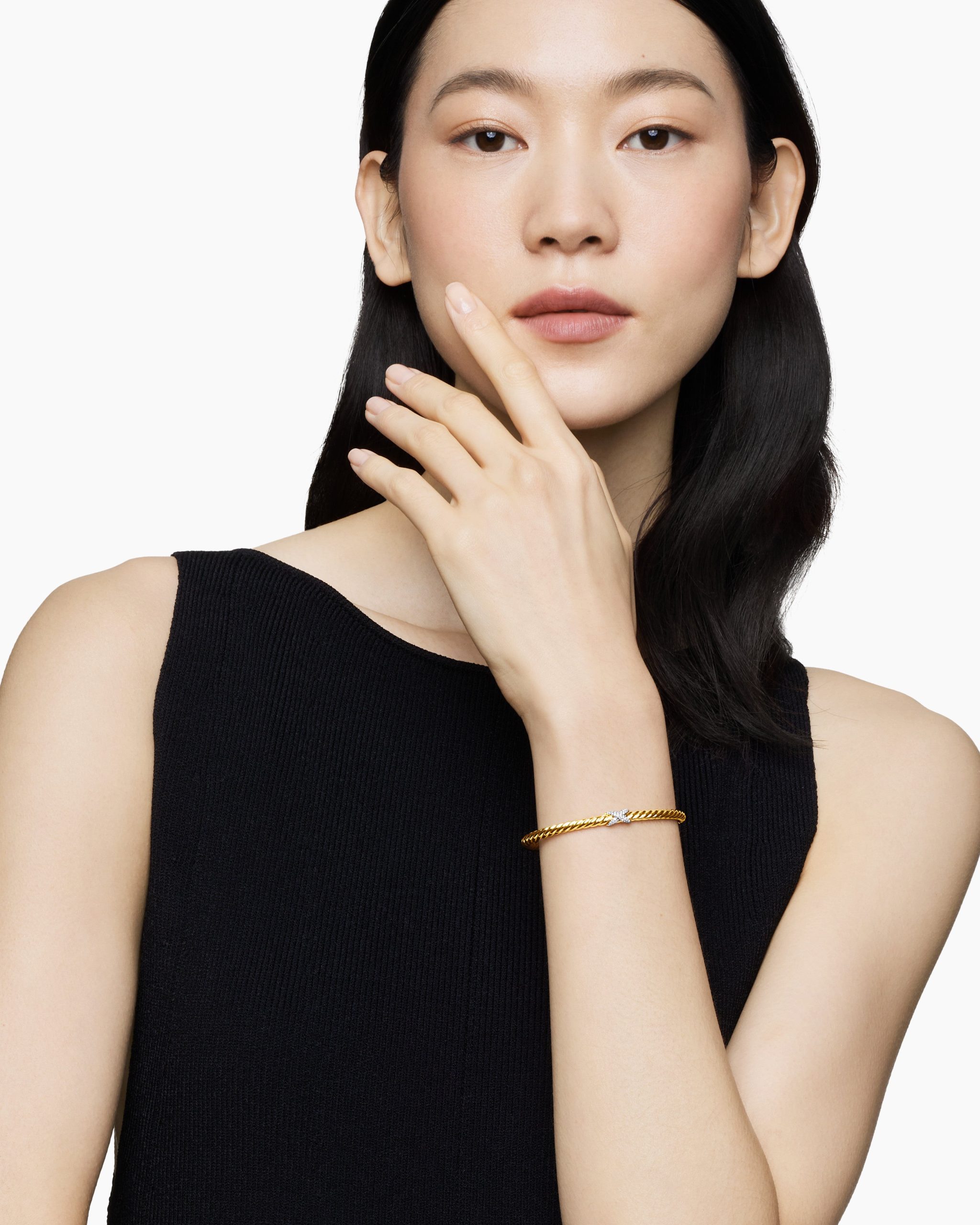 One of David Yurman’s most iconic designs, the X Collection was inspired by his wife Sybil’s painting of the ancient mark. Classic yet contemporary, the collection epitomizes his approach to design. 18-karat yellow goldPavé diamonds, 0.15 total carat weight Bracelet, 4mmCablespira® is a patented DY construction that is highly flexible and exceptionally comfortable to wear.